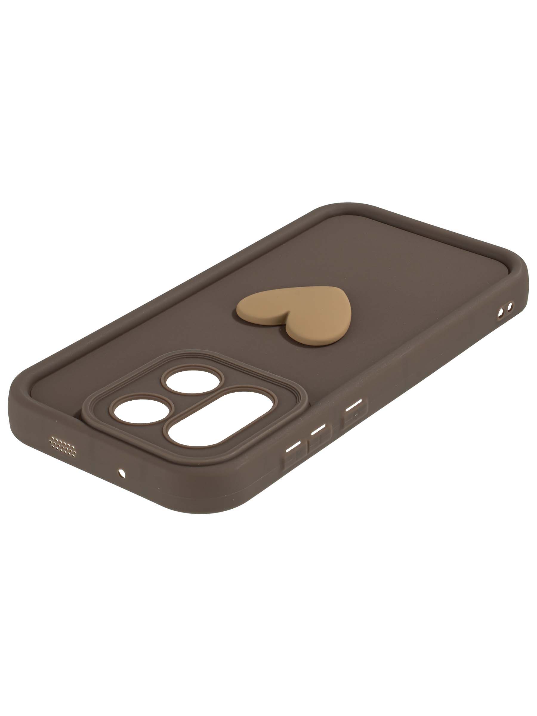 Силиконовый чехол с объемным сердцем от КейсБерри. Модуль камер максимально защищен. Все вырезы идеально подогнаны.
