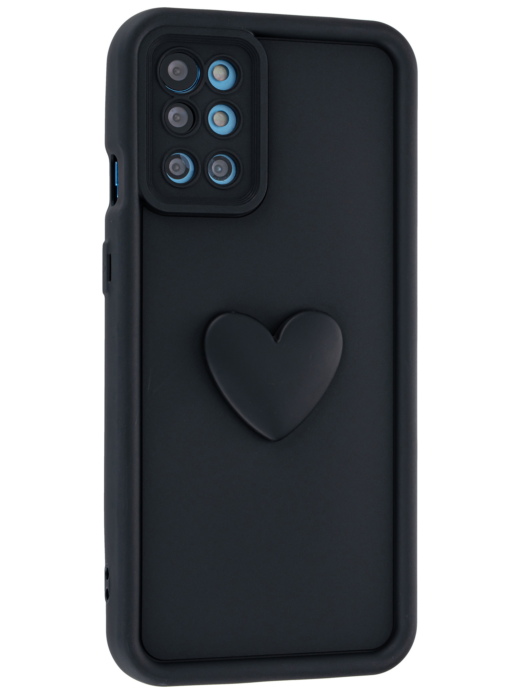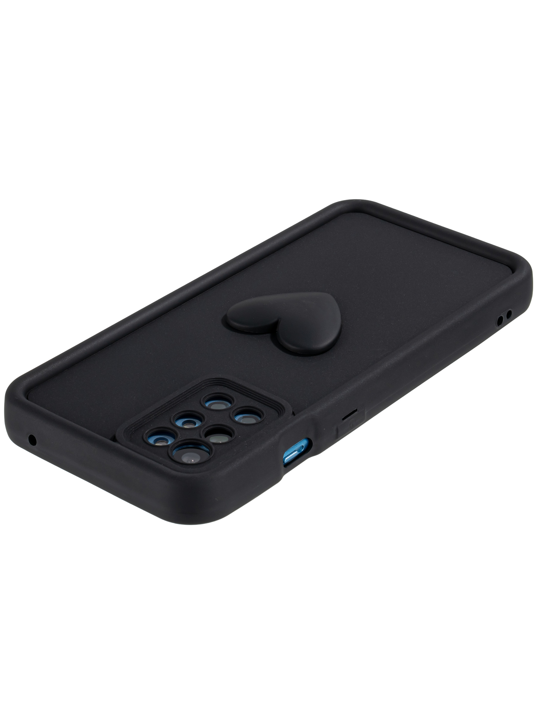 Силиконовый чехол с объемным сердцем от КейсБерри. Модуль камер максимально защищен. Все вырезы идеально подогнаны.