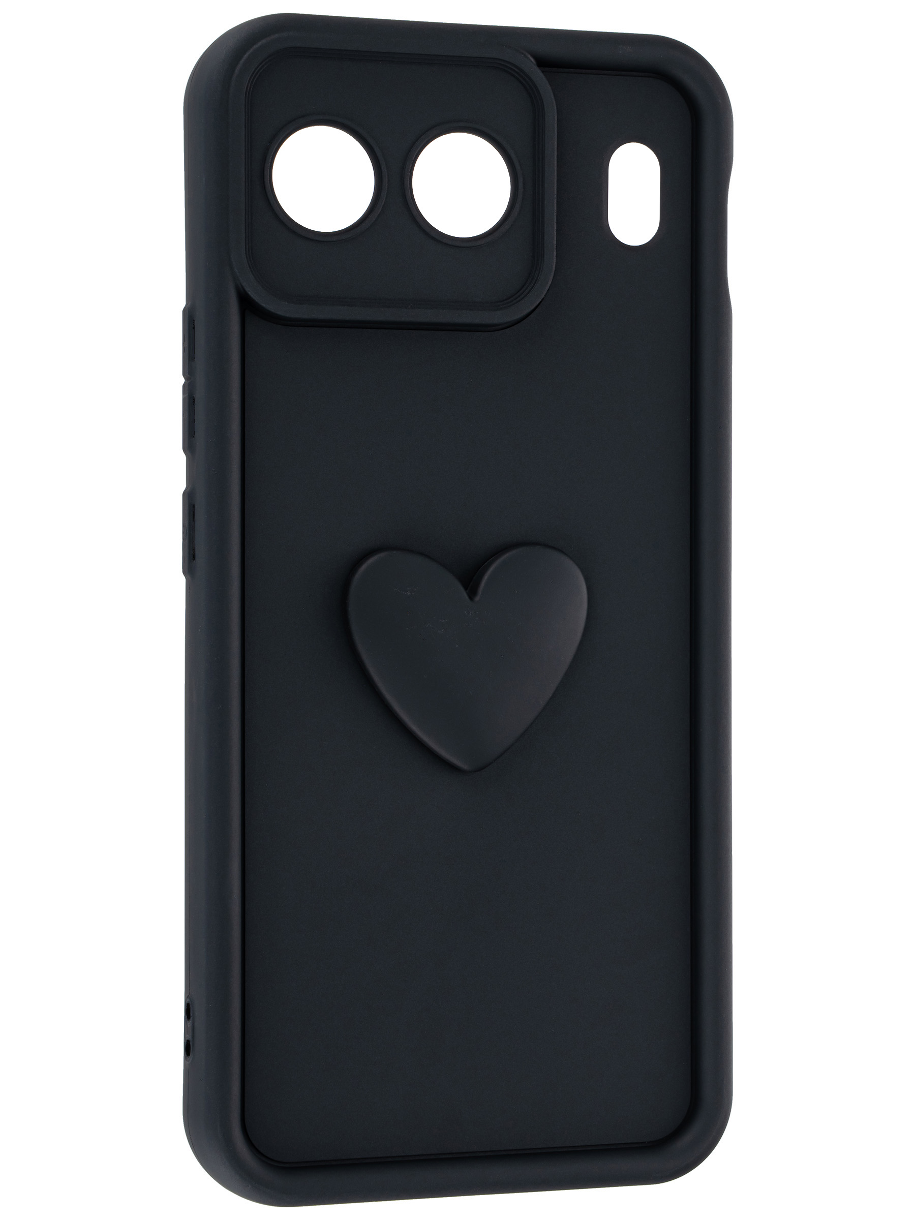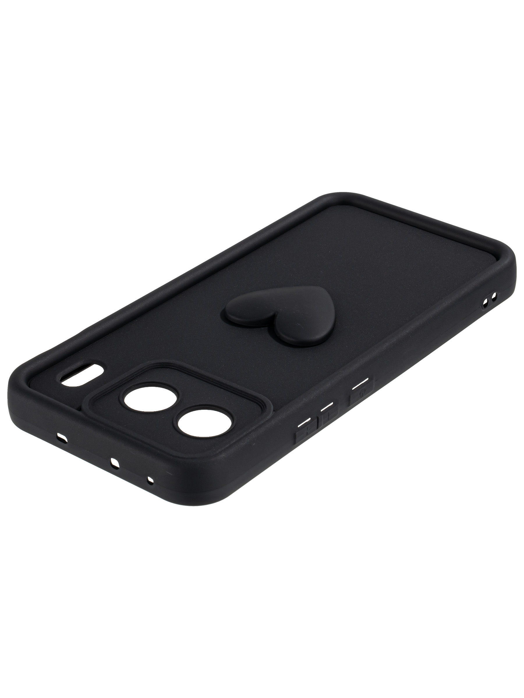 Силиконовый чехол с объемным сердцем от КейсБерри. Модуль камер максимально защищен. Все вырезы идеально подогнаны.