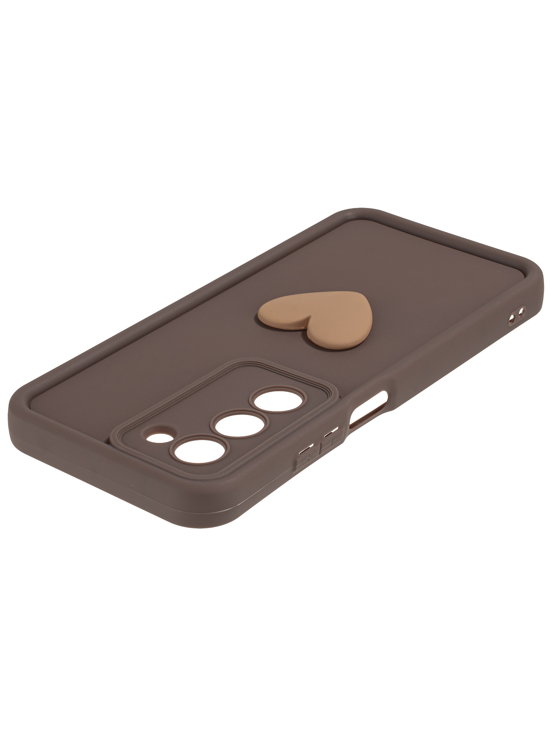 Силиконовый чехол с объемным сердцем от КейсБерри. Модуль камер максимально защищен. Все вырезы идеально подогнаны.