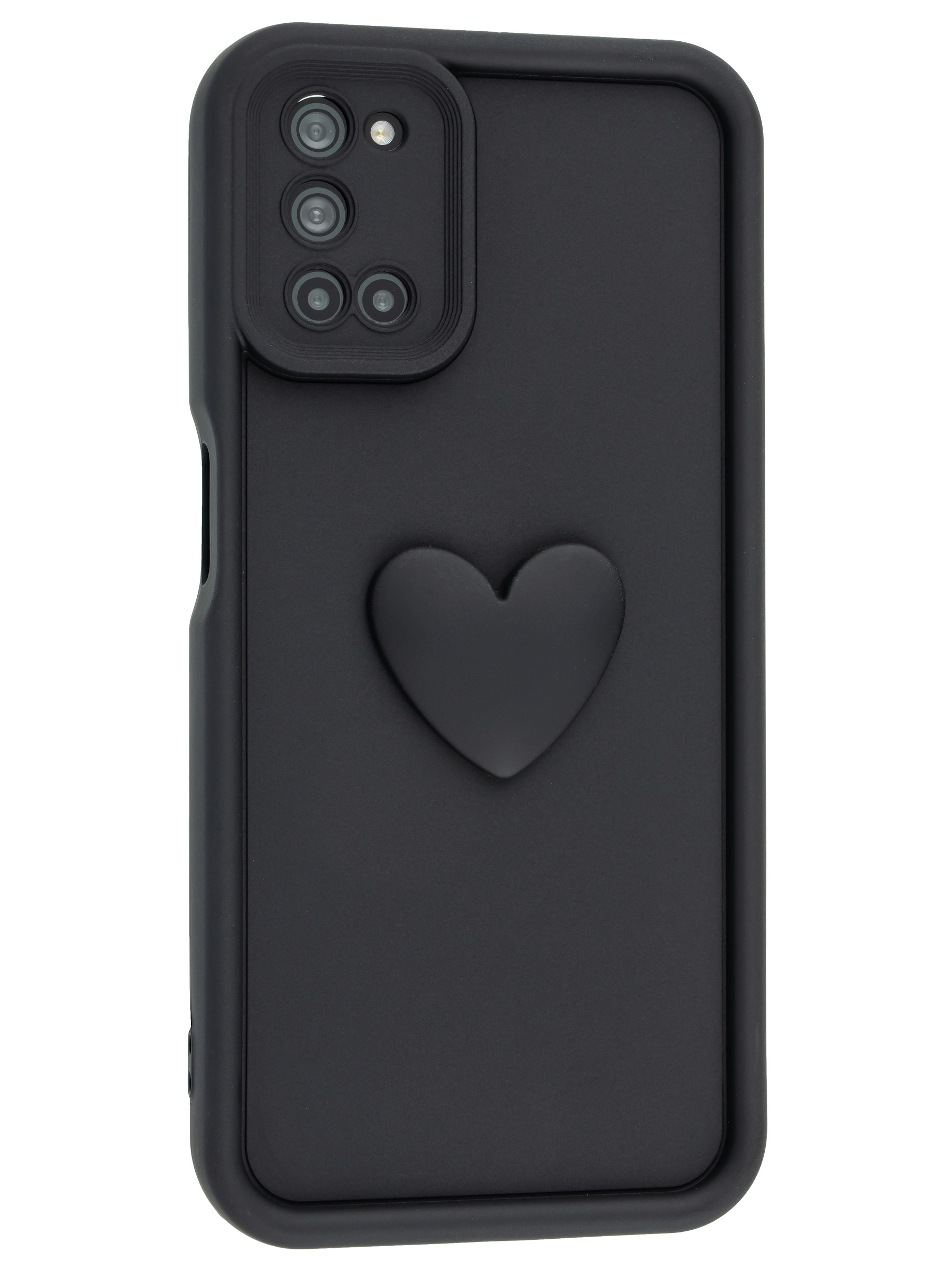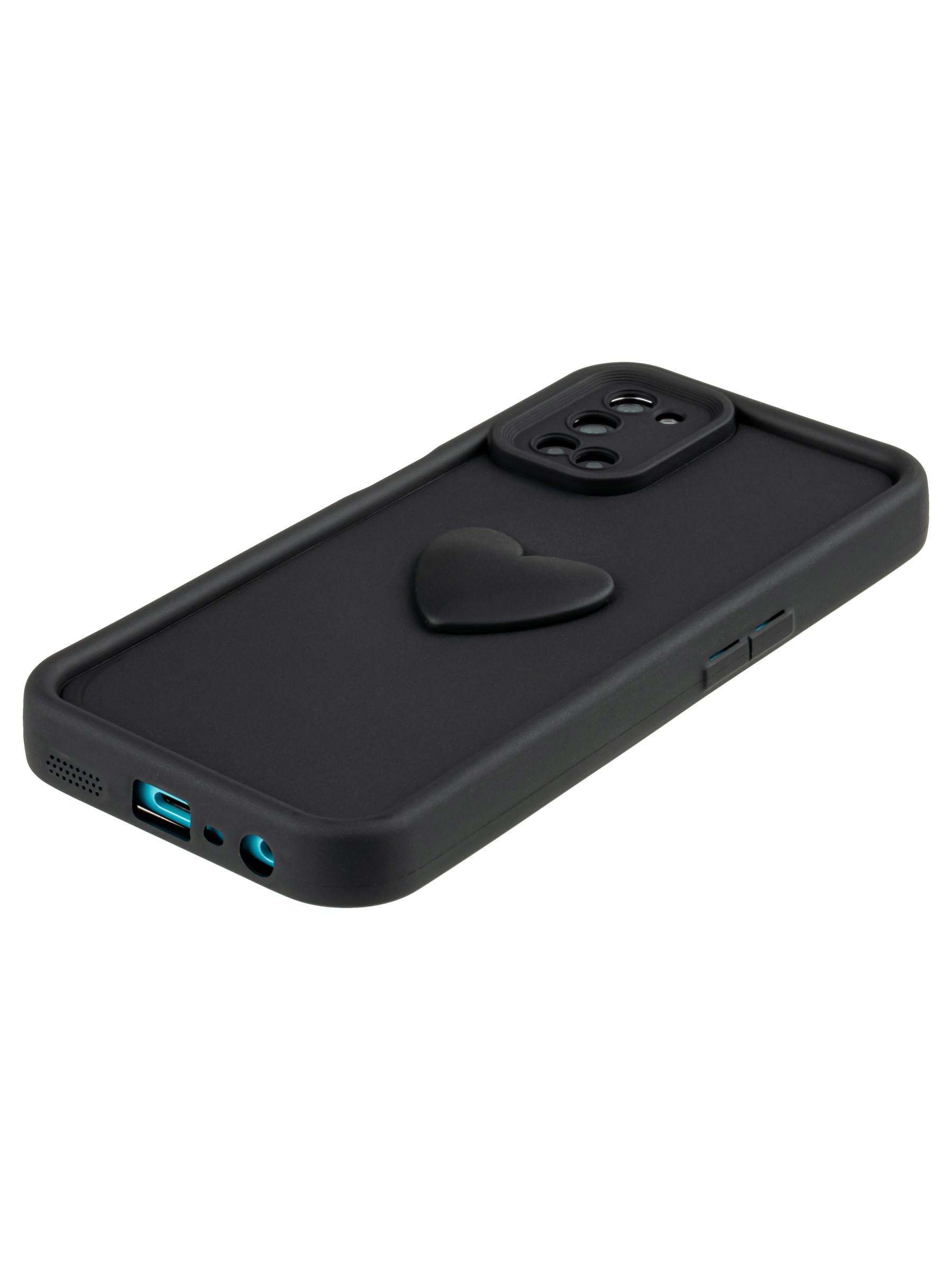 Силиконовый чехол с объемным сердцем от КейсБерри. Модуль камер максимально защищен. Все вырезы идеально подогнаны.