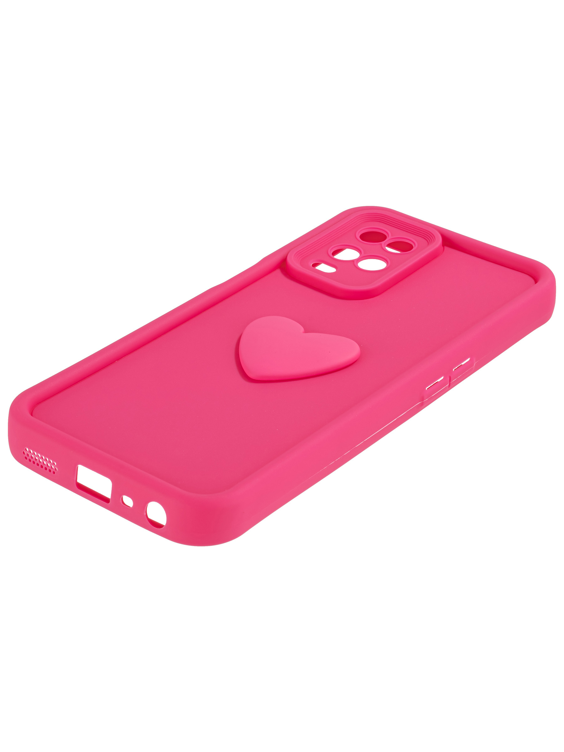 Силиконовый чехол с объемным сердцем от КейсБерри. Модуль камер максимально защищен. Все вырезы идеально подогнаны.