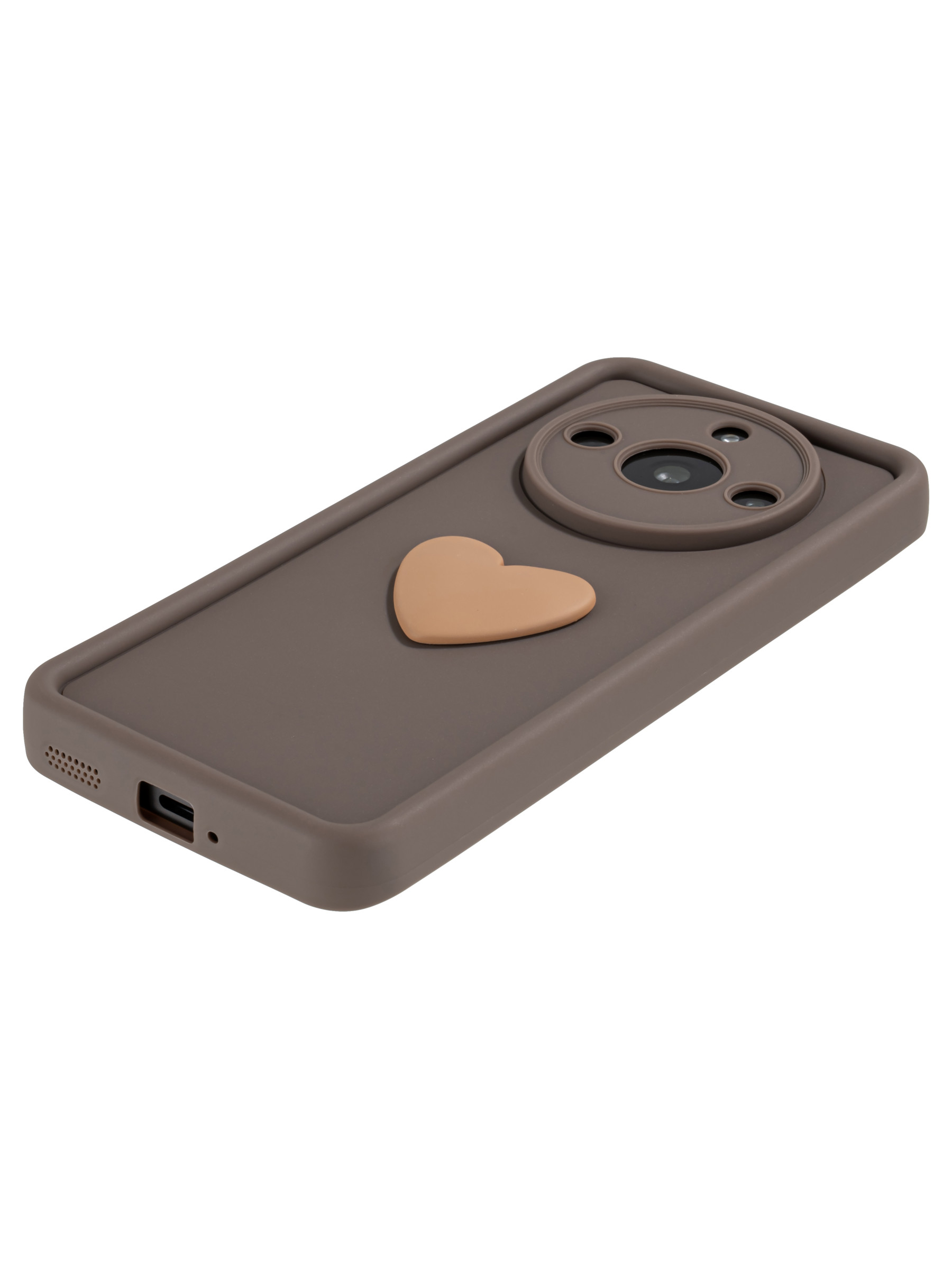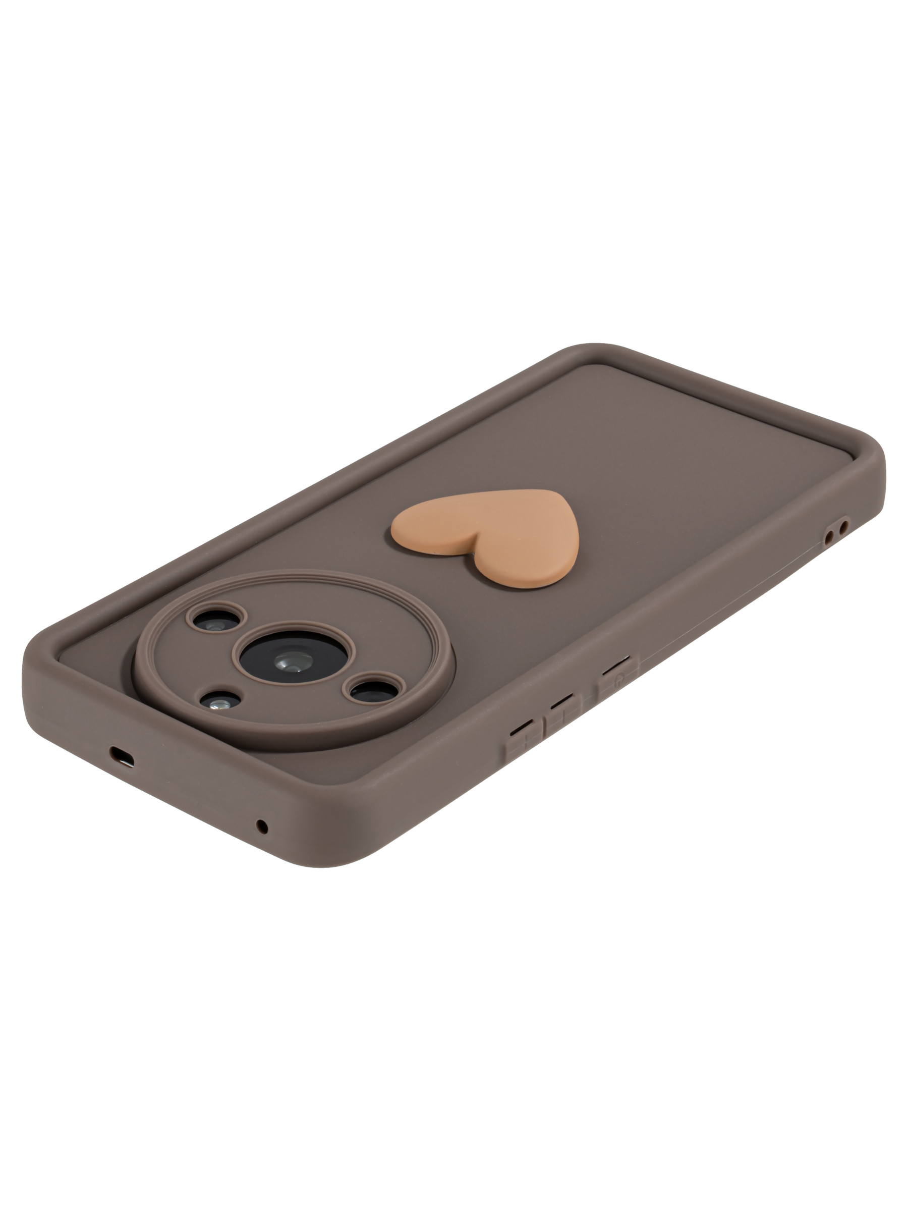 Силиконовый чехол с объемным сердцем от КейсБерри. Модуль камер максимально защищен. Все вырезы идеально подогнаны.