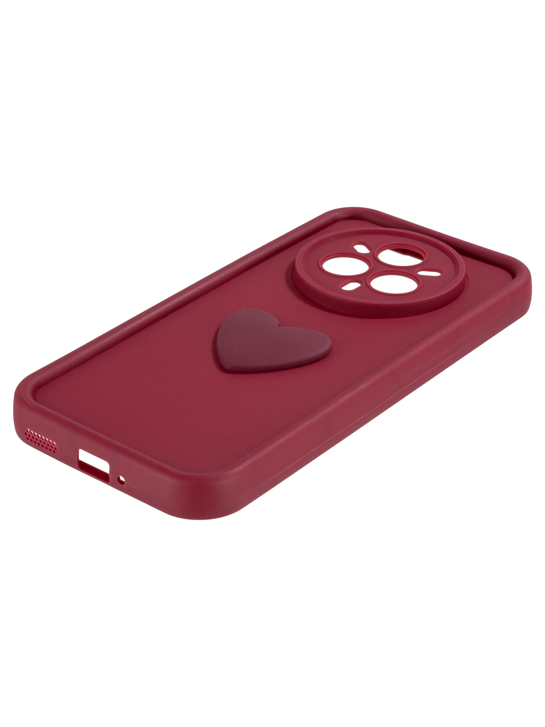Силиконовый чехол с объемным сердцем от КейсБерри. Модуль камер максимально защищен. Все вырезы идеально подогнаны.