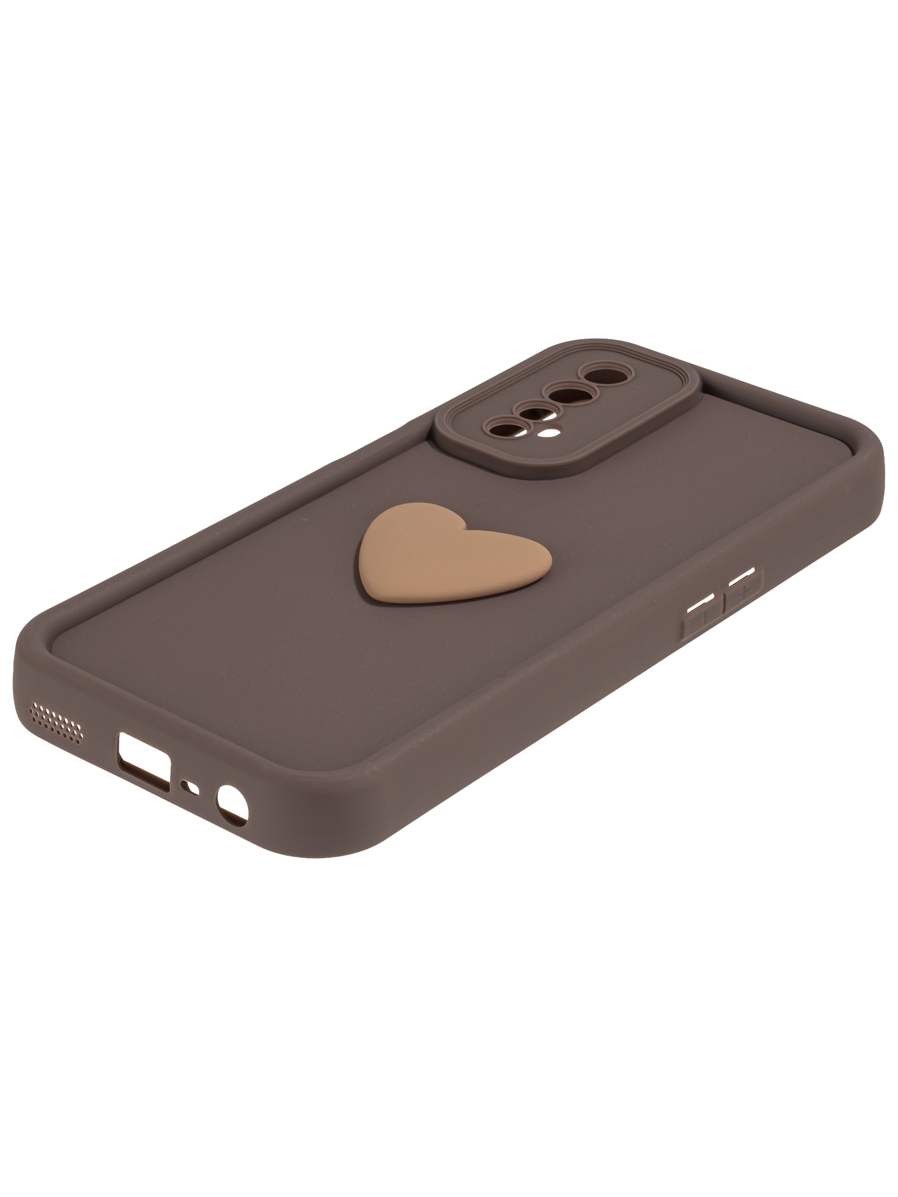 Силиконовый чехол с объемным сердцем от КейсБерри. Модуль камер максимально защищен. Все вырезы идеально подогнаны.