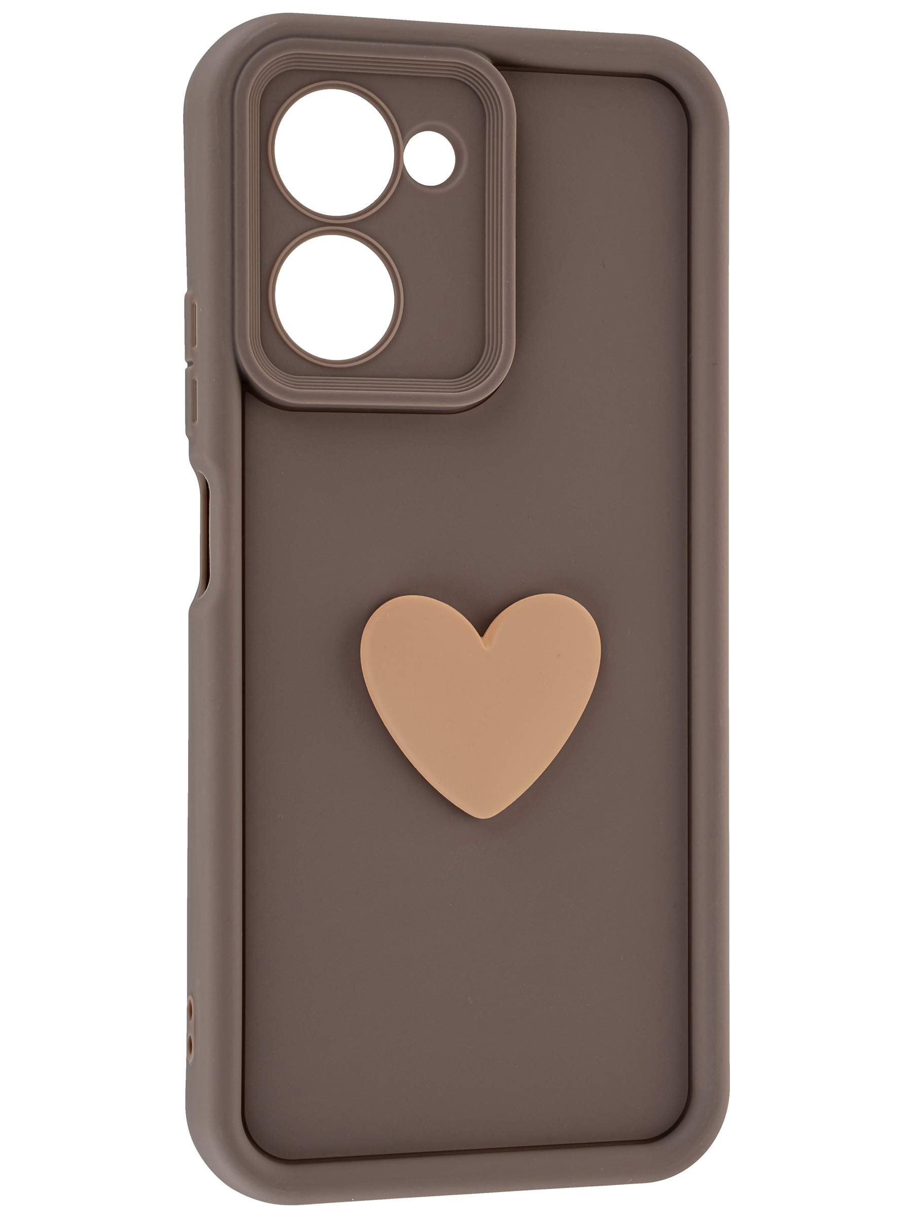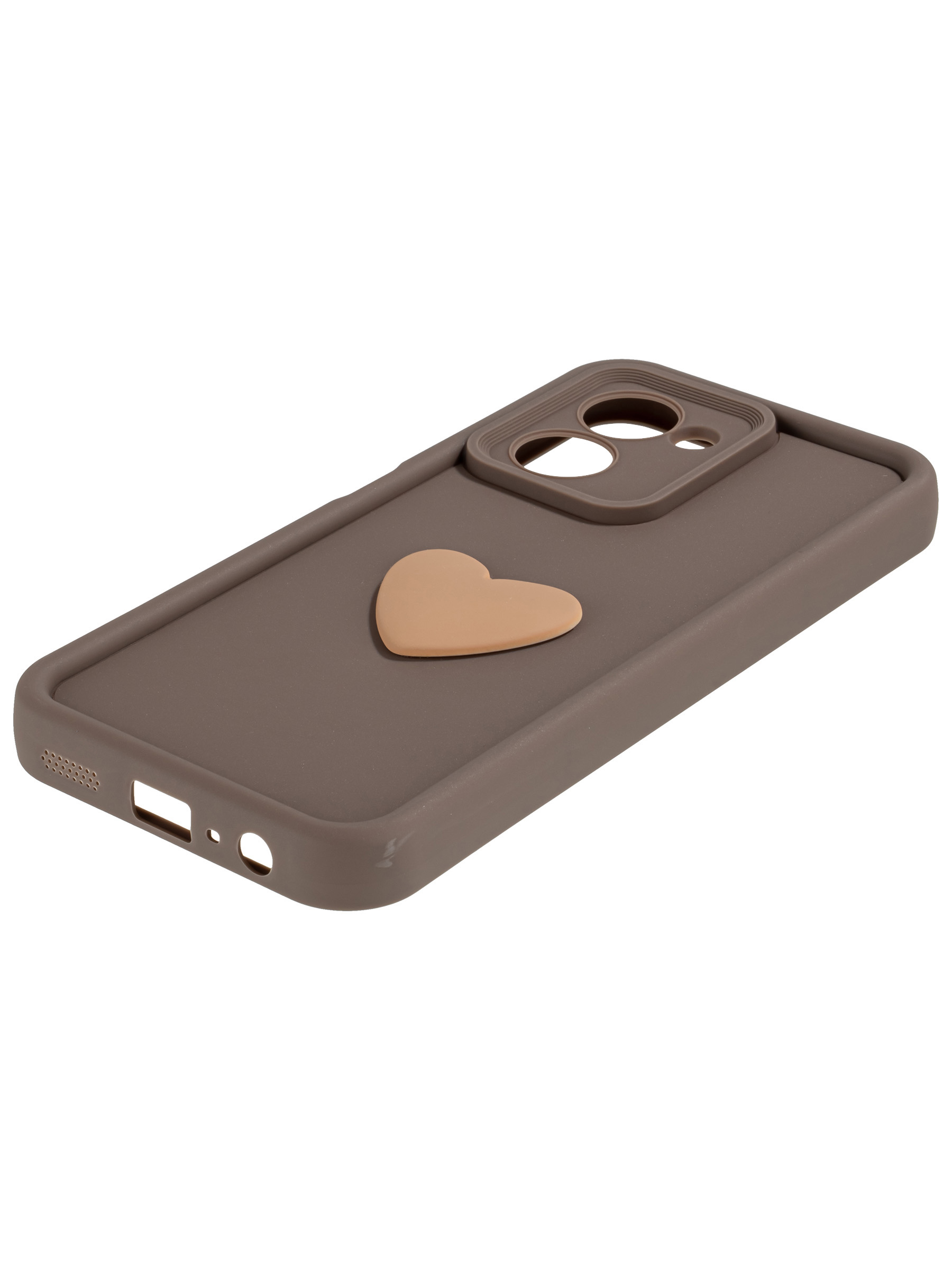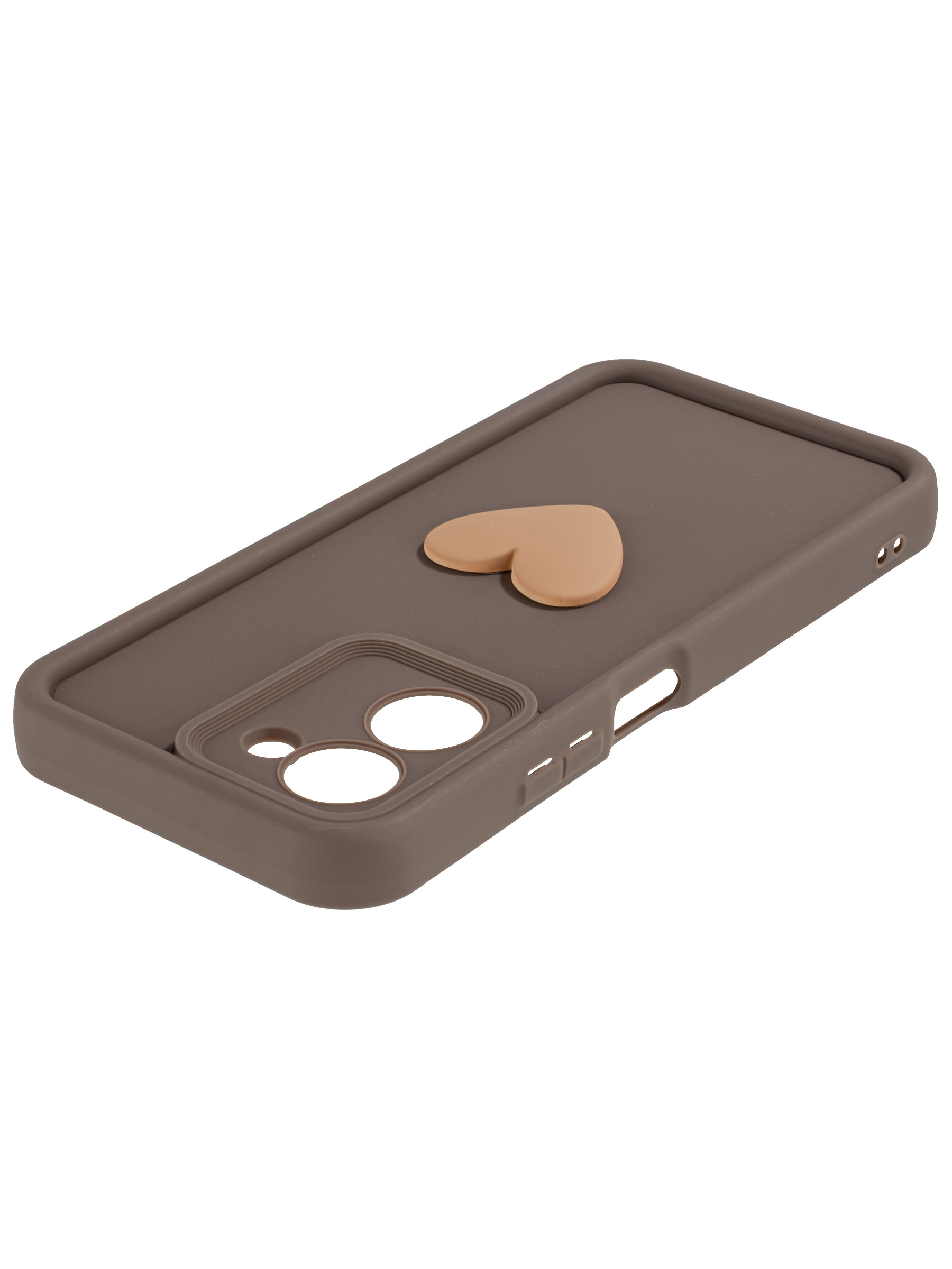 Силиконовый чехол с объемным сердцем от КейсБерри. Модуль камер максимально защищен. Все вырезы идеально подогнаны.