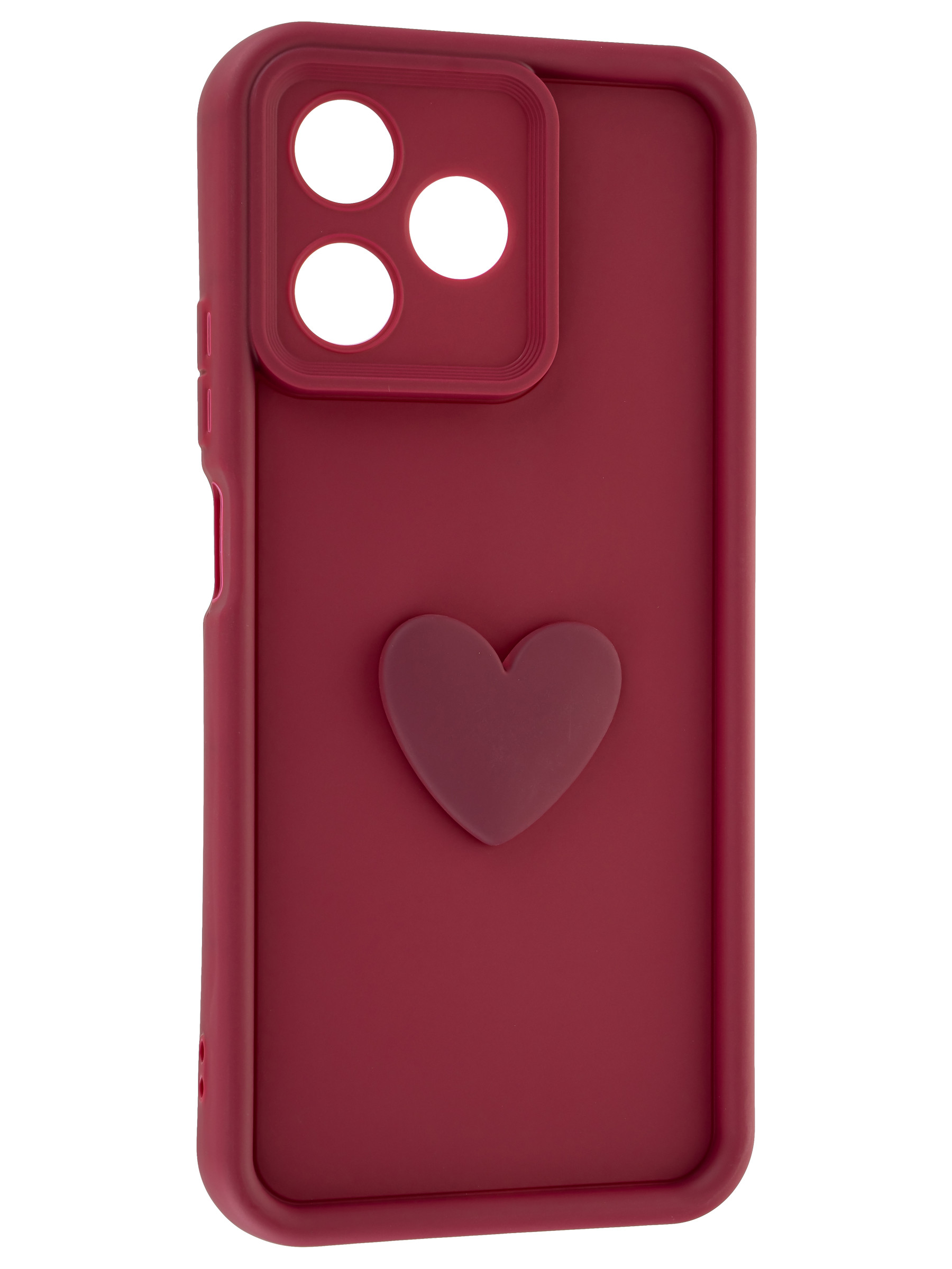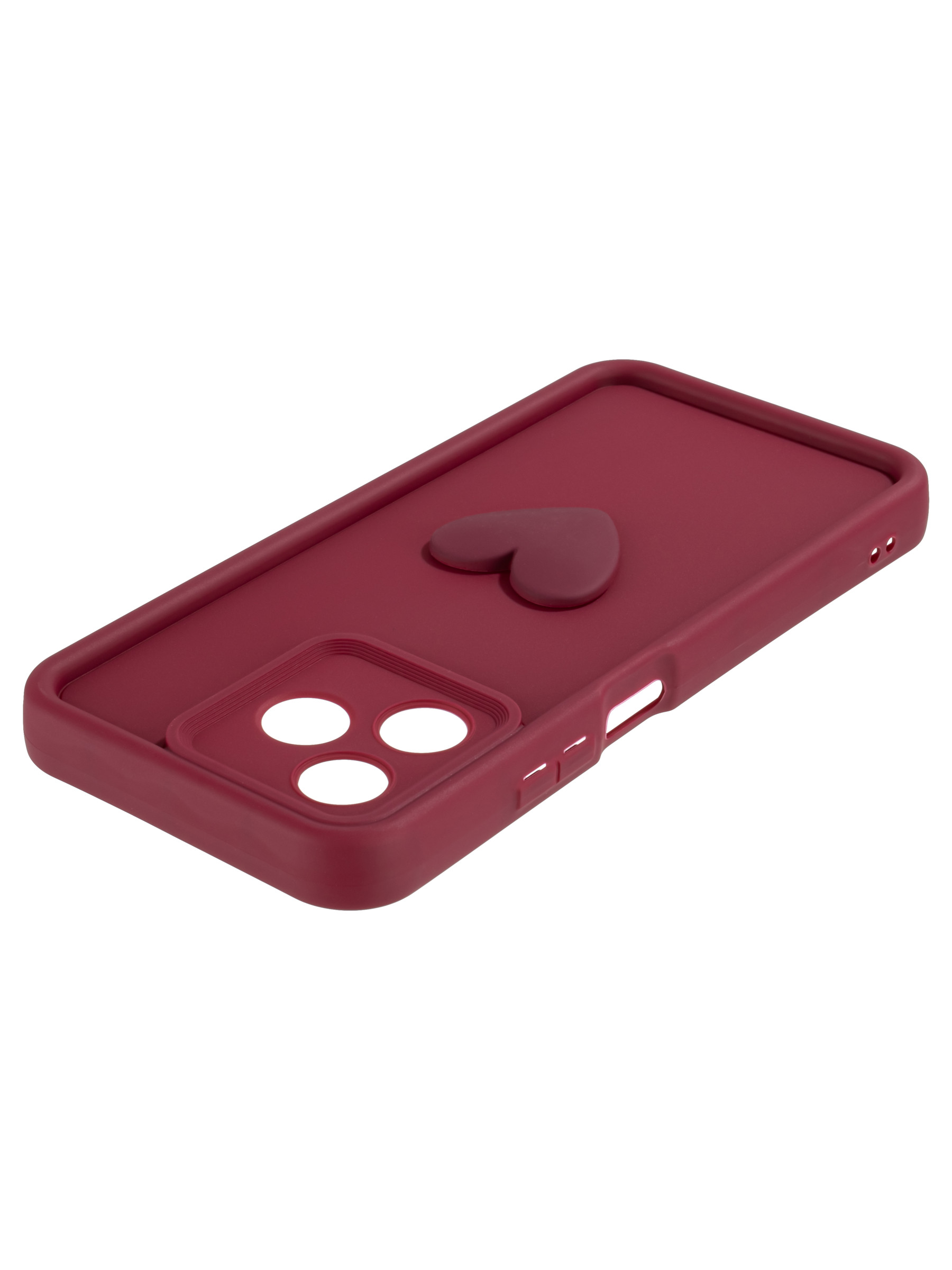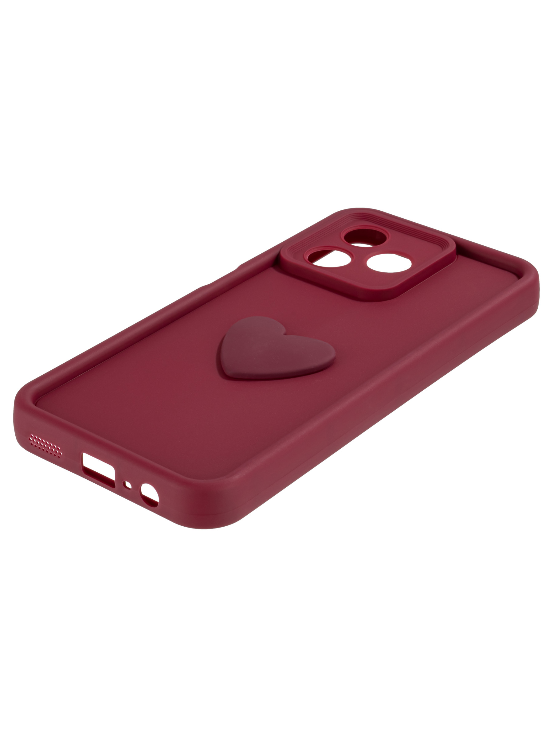Силиконовый чехол с объемным сердцем от КейсБерри. Модуль камер максимально защищен. Все вырезы идеально подогнаны.