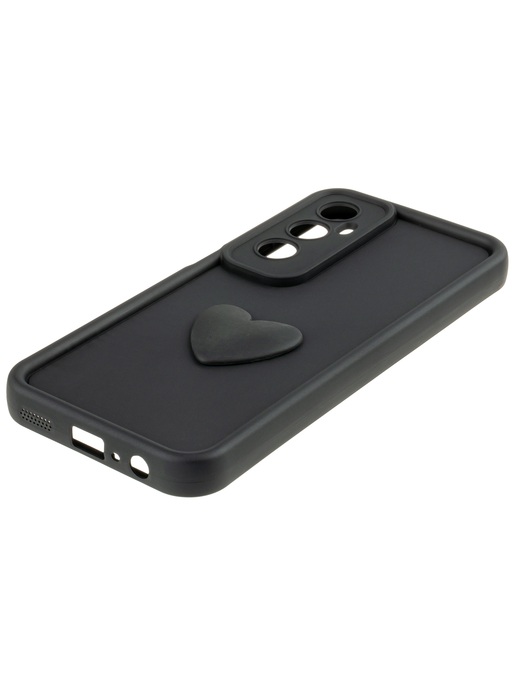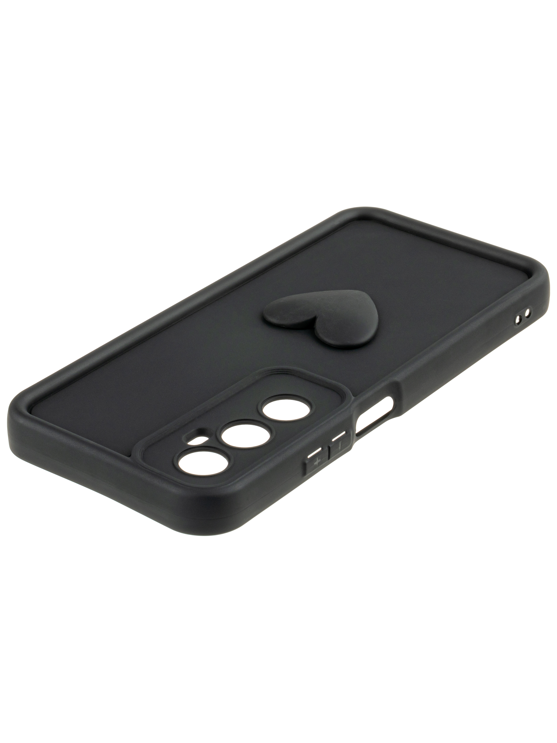 Силиконовый чехол с объемным сердцем от КейсБерри. Модуль камер максимально защищен. Все вырезы идеально подогнаны.