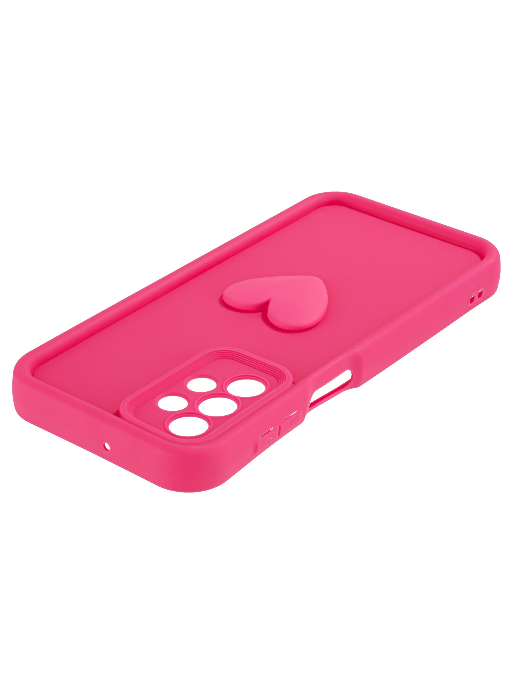 Силиконовый чехол с объемным сердцем от КейсБерри. Модуль камер максимально защищен. Все вырезы идеально подогнаны.