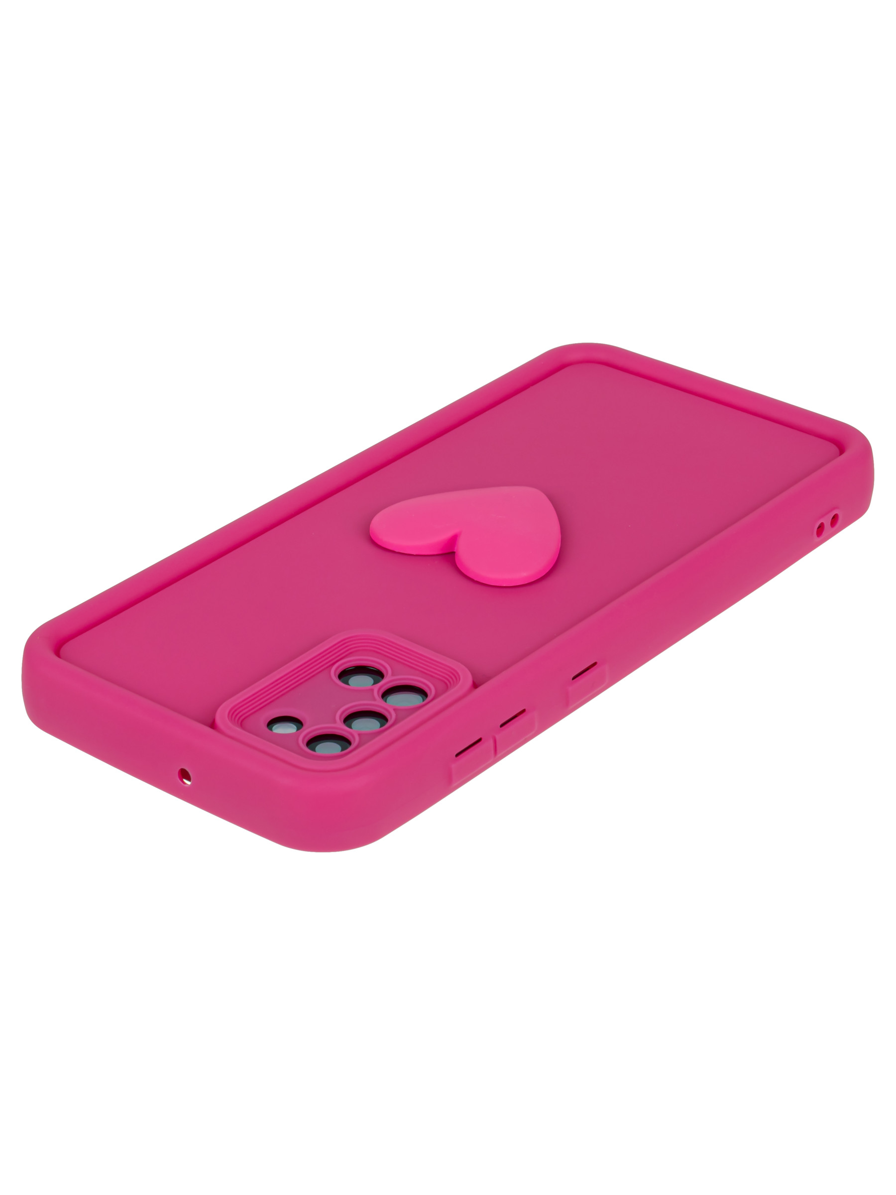 Силиконовый чехол с объемным сердцем от КейсБерри. Модуль камер максимально защищен. Все вырезы идеально подогнаны.