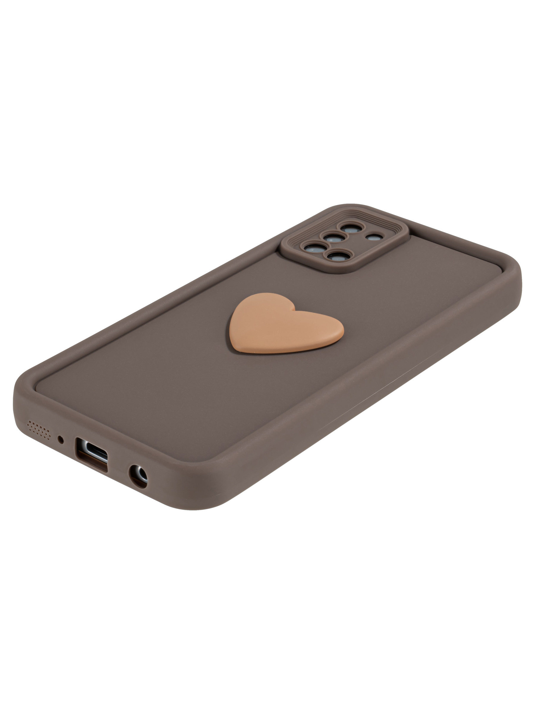 Силиконовый чехол с объемным сердцем от КейсБерри. Модуль камер максимально защищен. Все вырезы идеально подогнаны.