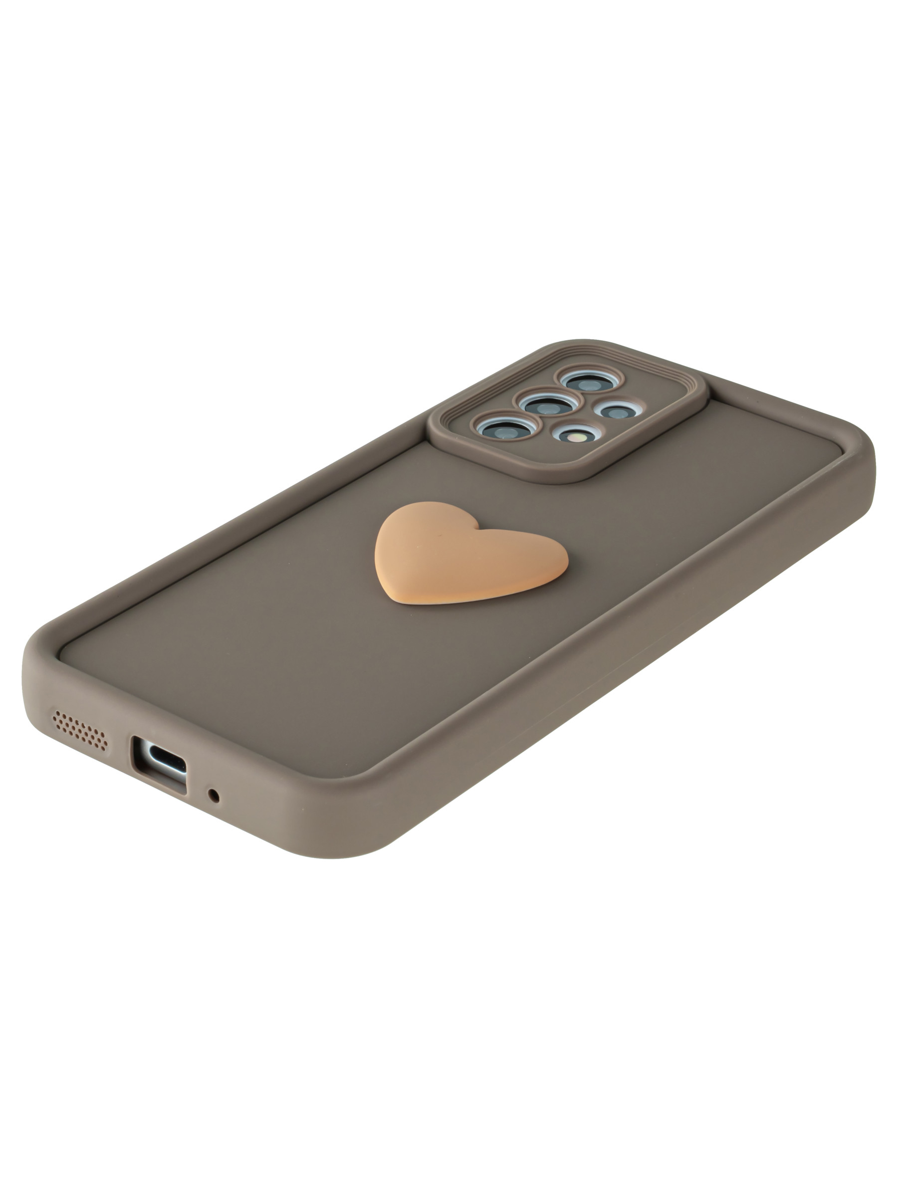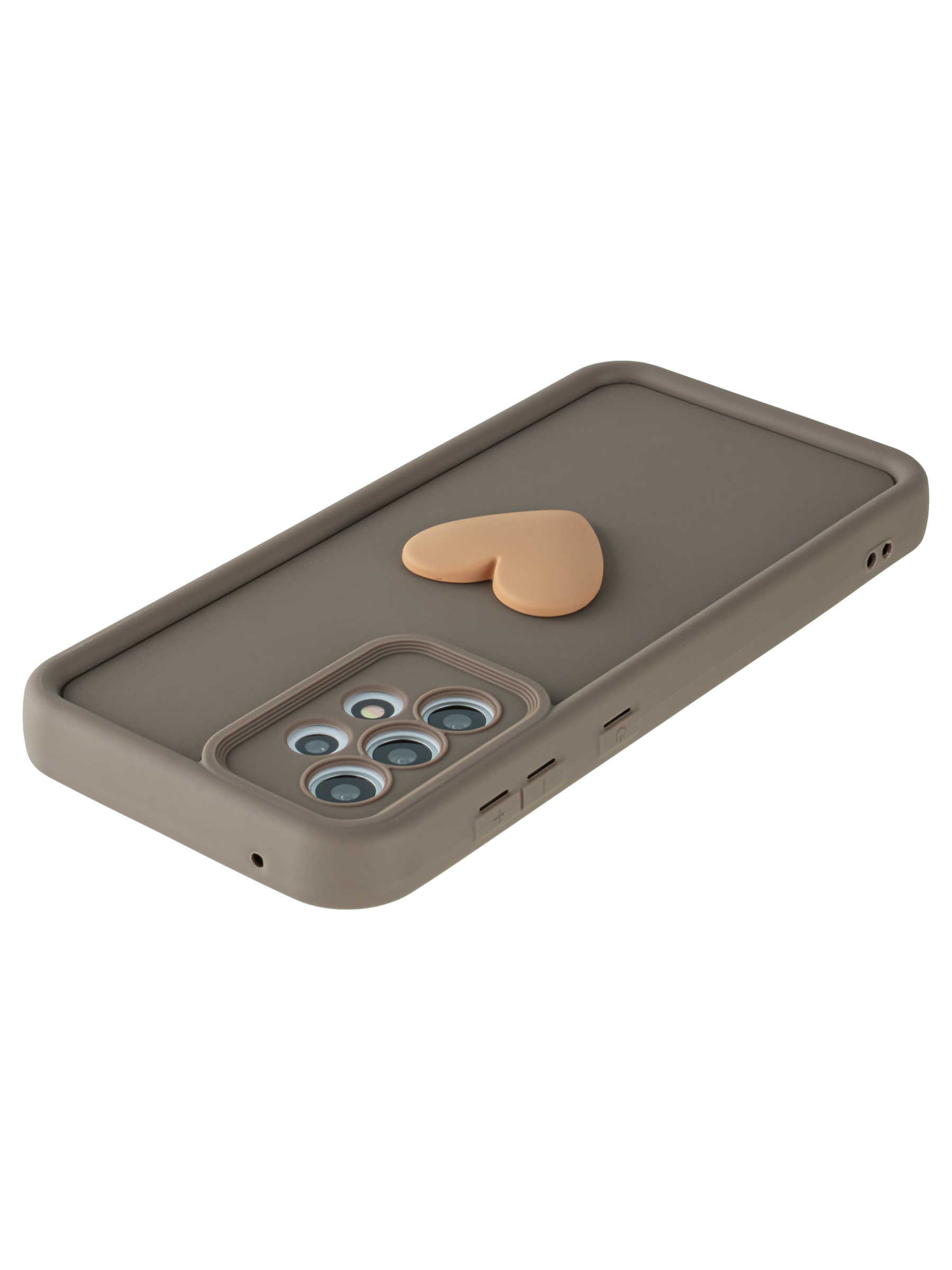 Силиконовый чехол с объемным сердцем от КейсБерри. Модуль камер максимально защищен. Все вырезы идеально подогнаны.