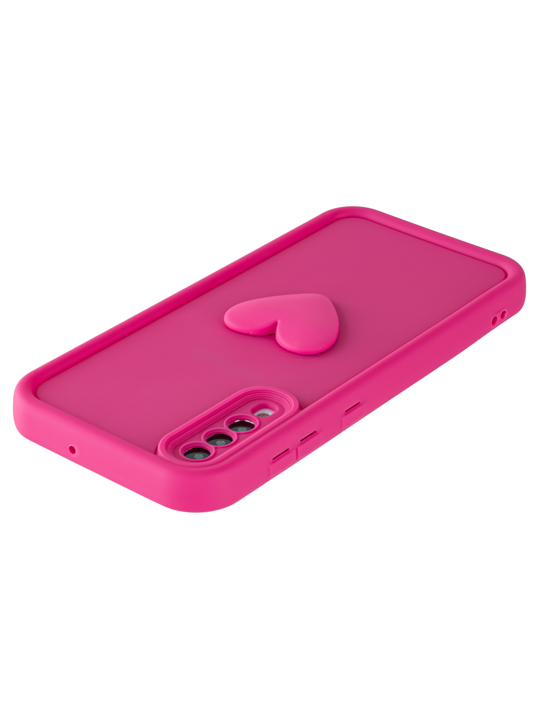 Силиконовый чехол с объемным сердцем от КейсБерри. Модуль камер максимально защищен. Все вырезы идеально подогнаны.