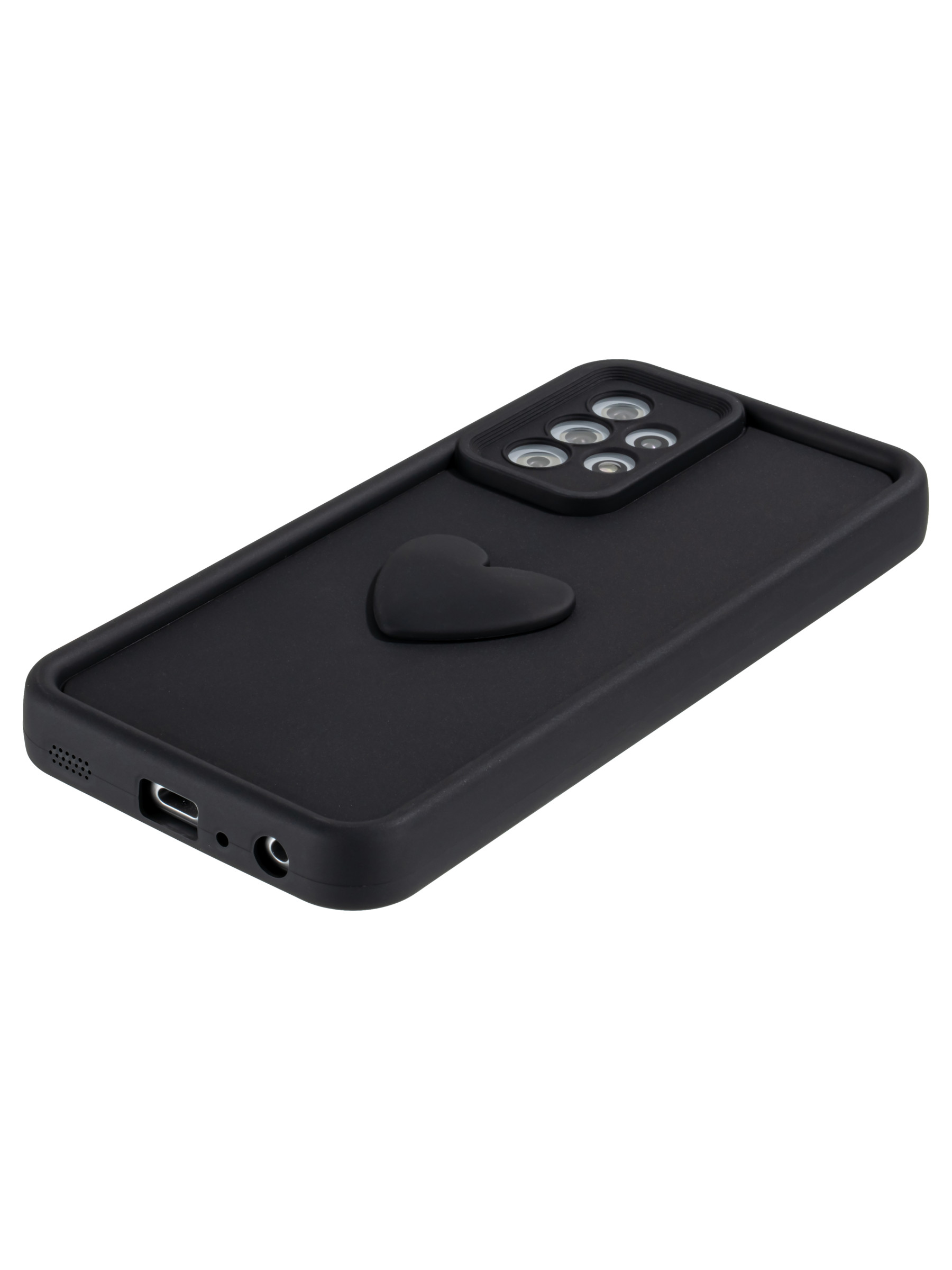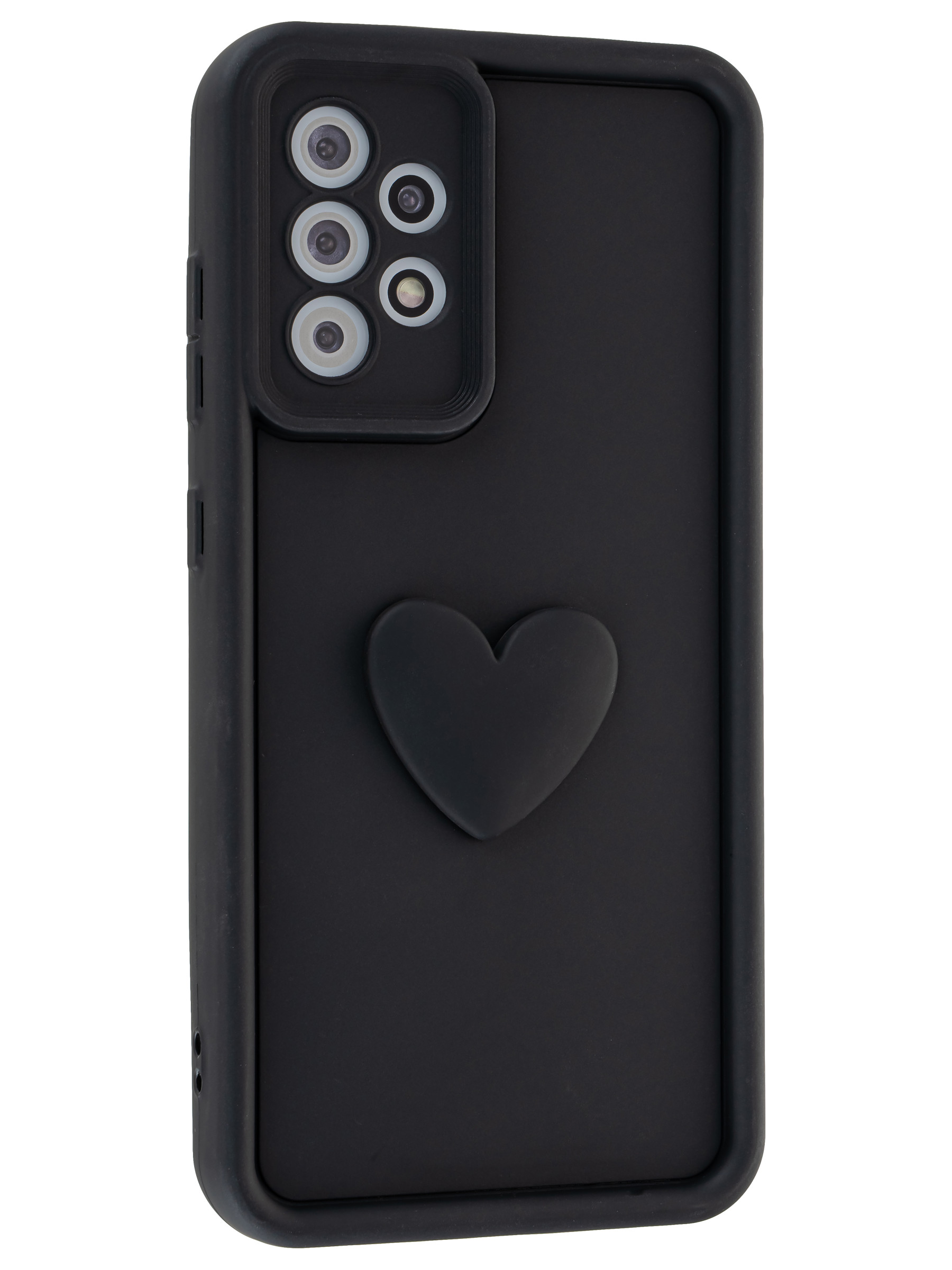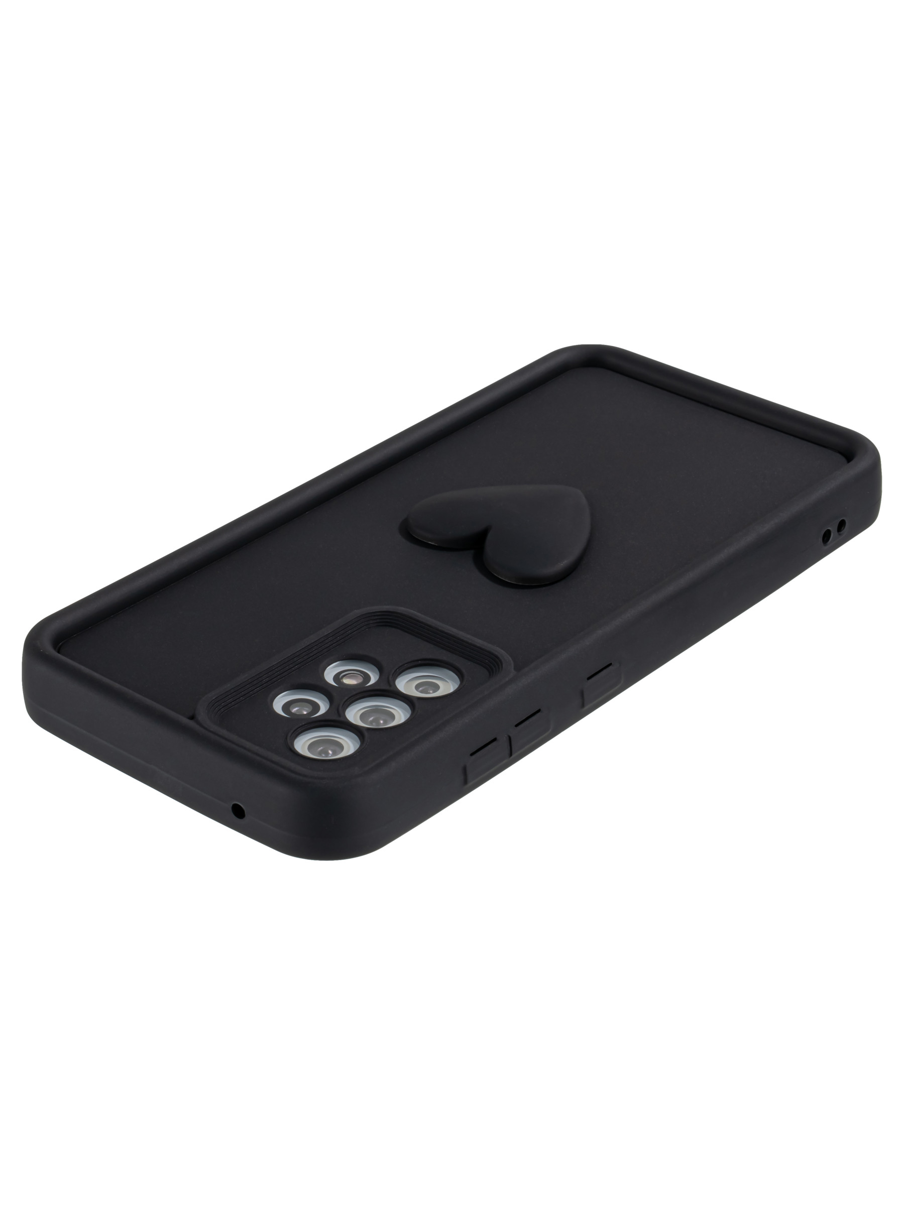 Силиконовый чехол с объемным сердцем от КейсБерри. Модуль камер максимально защищен. Все вырезы идеально подогнаны.
