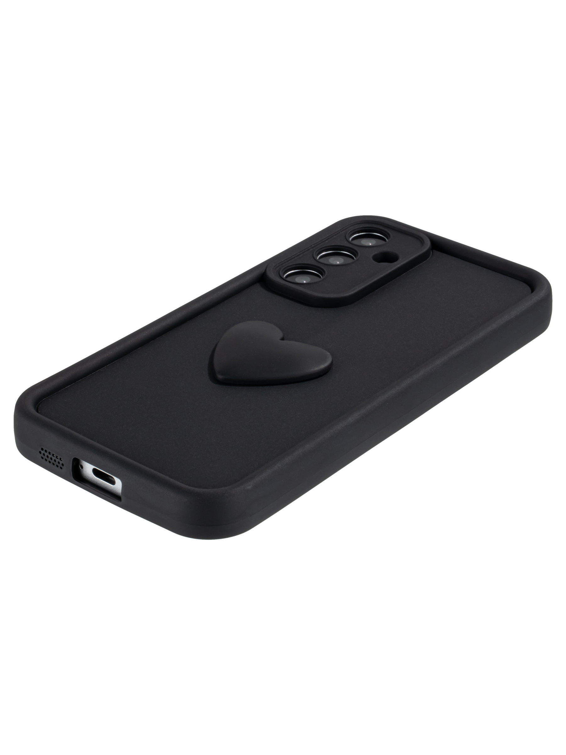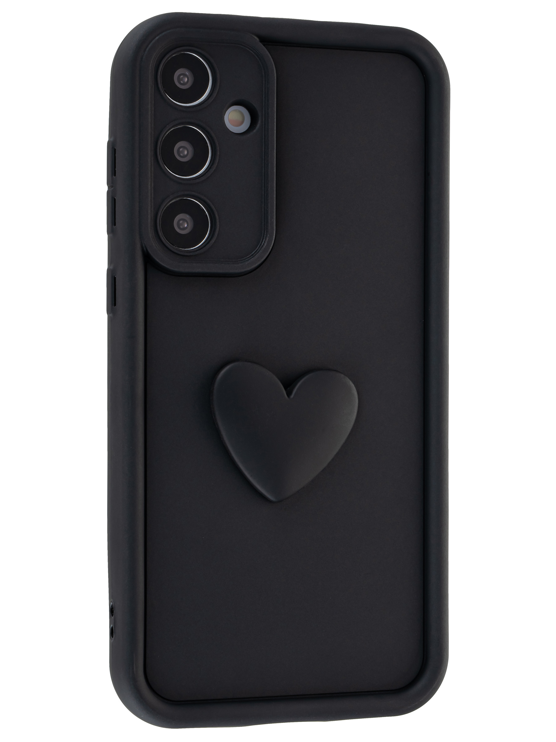 Силиконовый чехол с объемным сердцем от КейсБерри. Модуль камер максимально защищен. Все вырезы идеально подогнаны.
