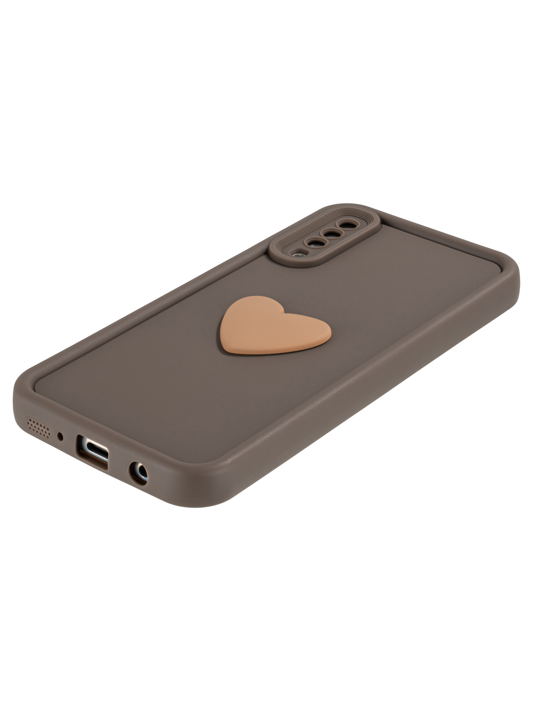 Силиконовый чехол с объемным сердцем от КейсБерри. Модуль камер максимально защищен. Все вырезы идеально подогнаны.