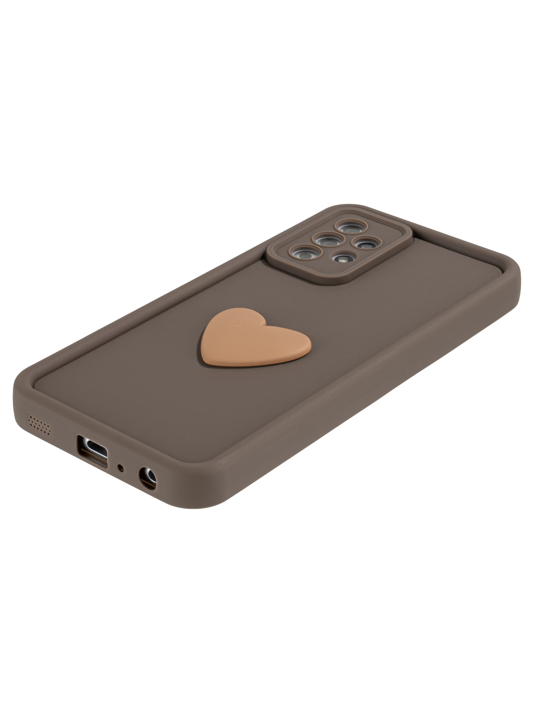 Силиконовый чехол с объемным сердцем от КейсБерри. Модуль камер максимально защищен. Все вырезы идеально подогнаны.