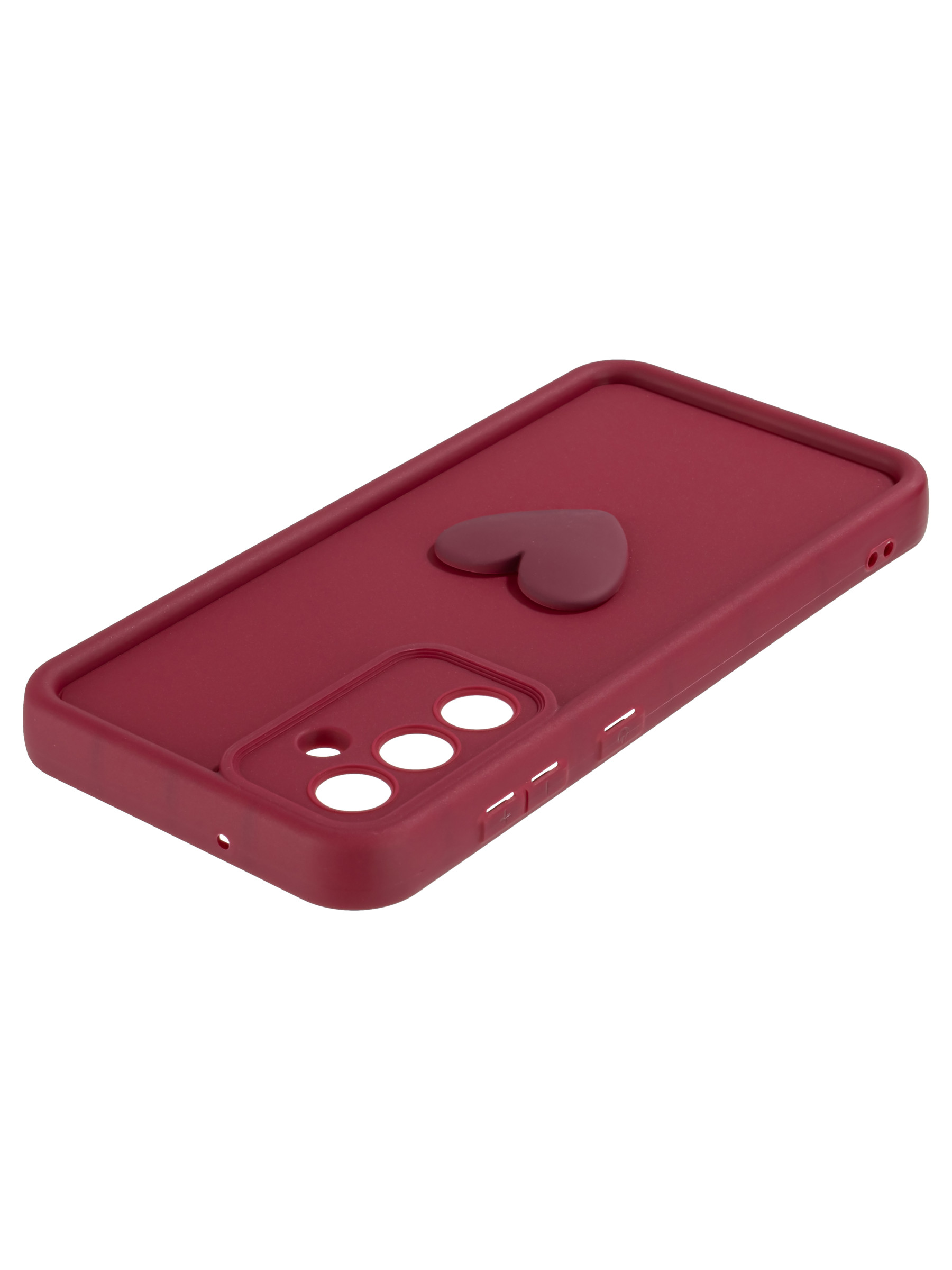Силиконовый чехол с объемным сердцем от КейсБерри. Модуль камер максимально защищен. Все вырезы идеально подогнаны.