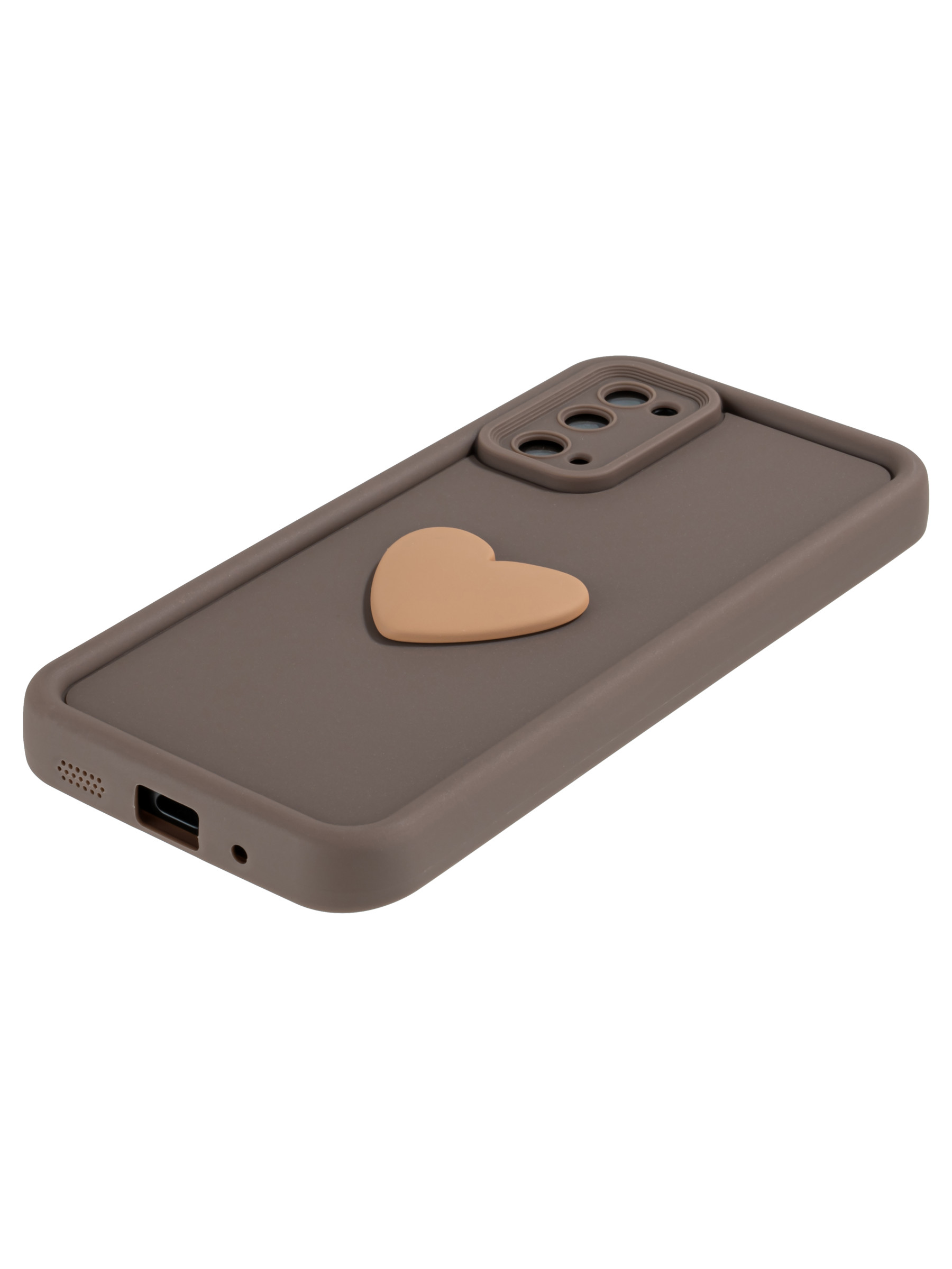 Силиконовый чехол с объемным сердцем от КейсБерри. Модуль камер максимально защищен. Все вырезы идеально подогнаны.