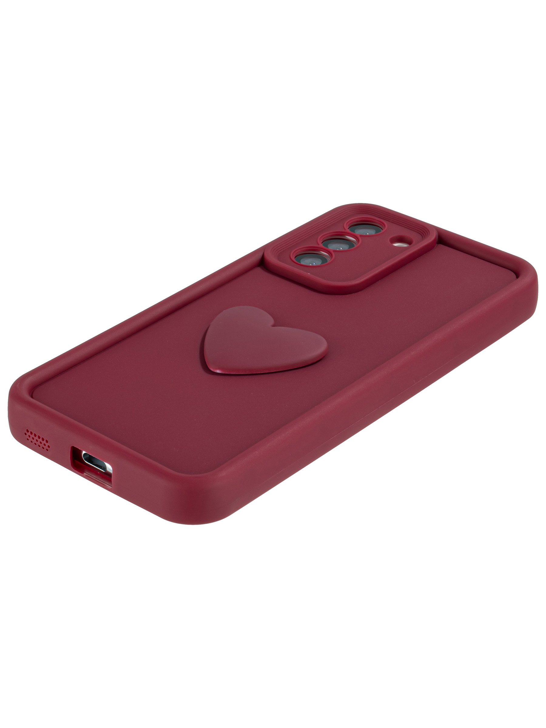 Силиконовый чехол с объемным сердцем от КейсБерри. Модуль камер максимально защищен. Все вырезы идеально подогнаны.