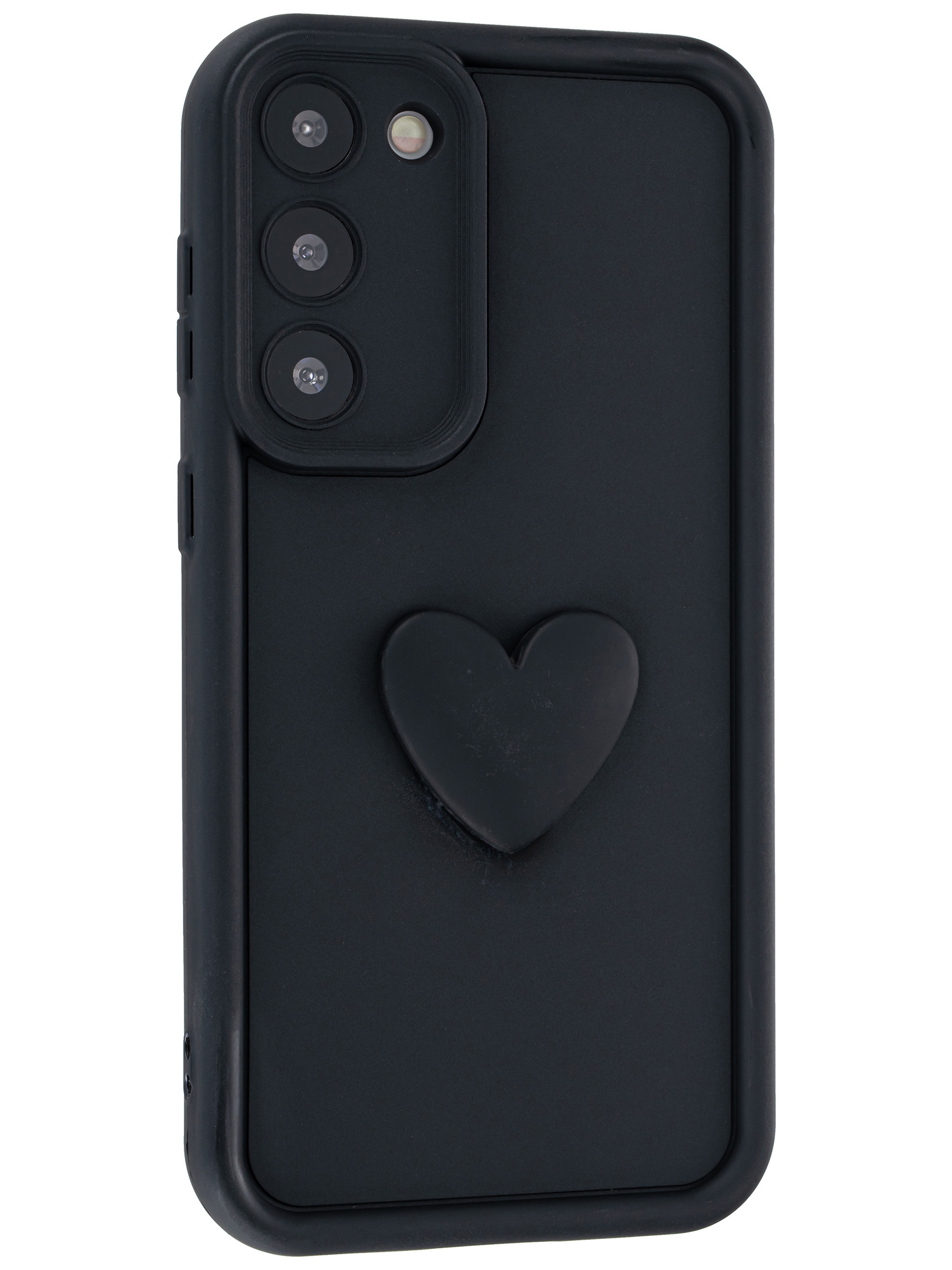 Силиконовый чехол с объемным сердцем от КейсБерри. Модуль камер максимально защищен. Все вырезы идеально подогнаны.