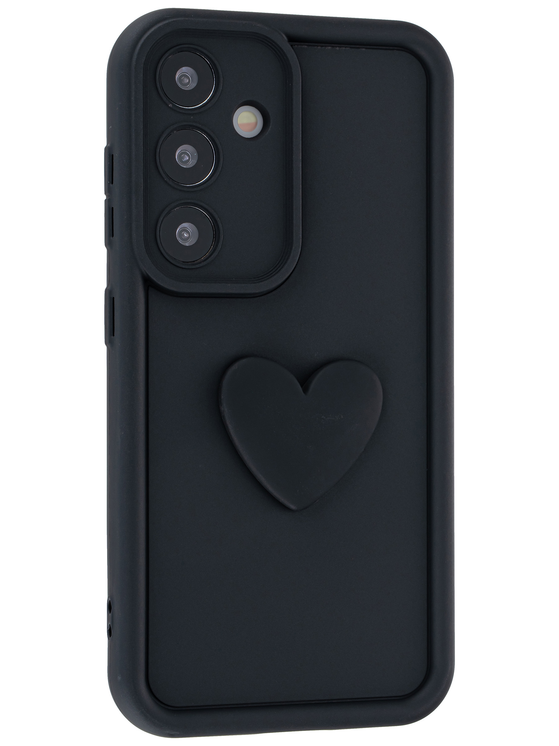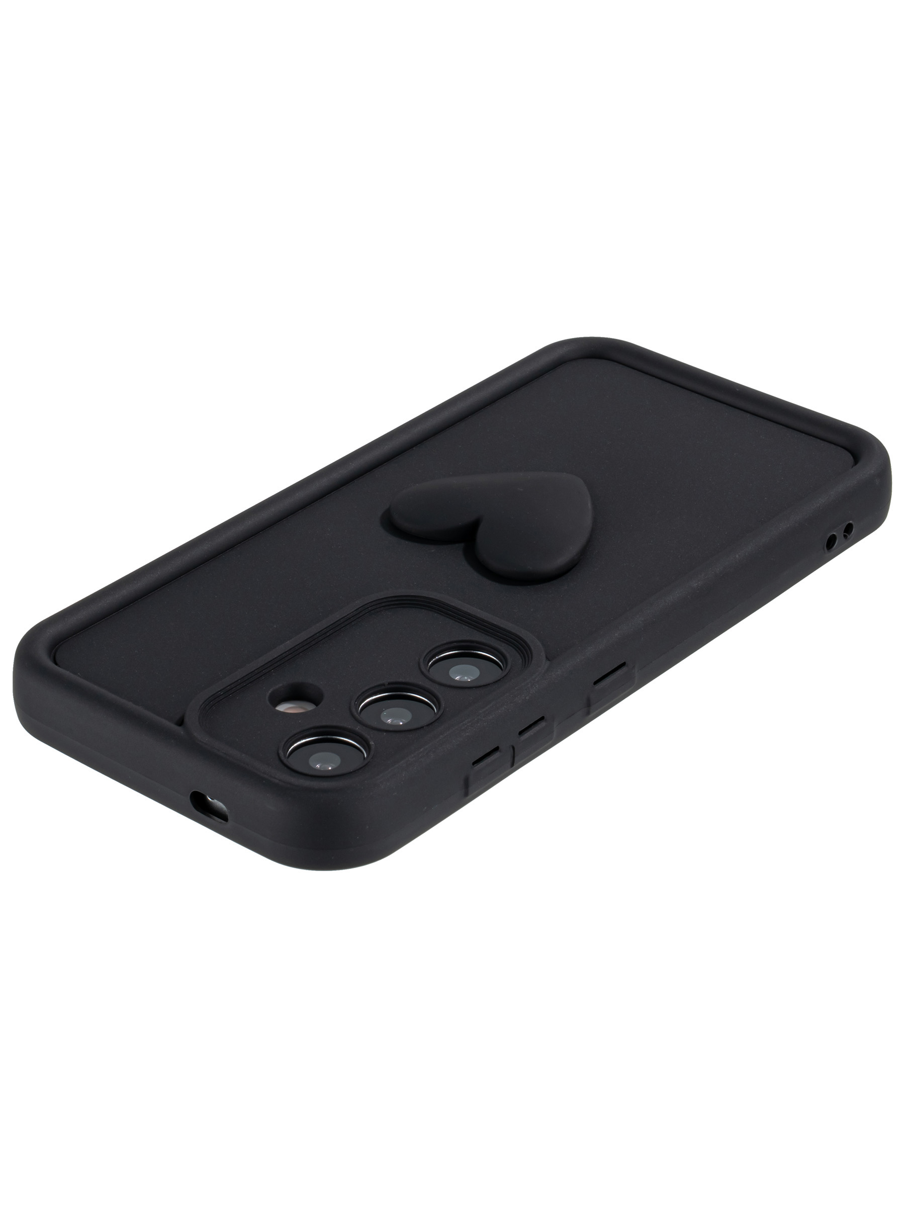 Силиконовый чехол с объемным сердцем от КейсБерри. Модуль камер максимально защищен. Все вырезы идеально подогнаны.