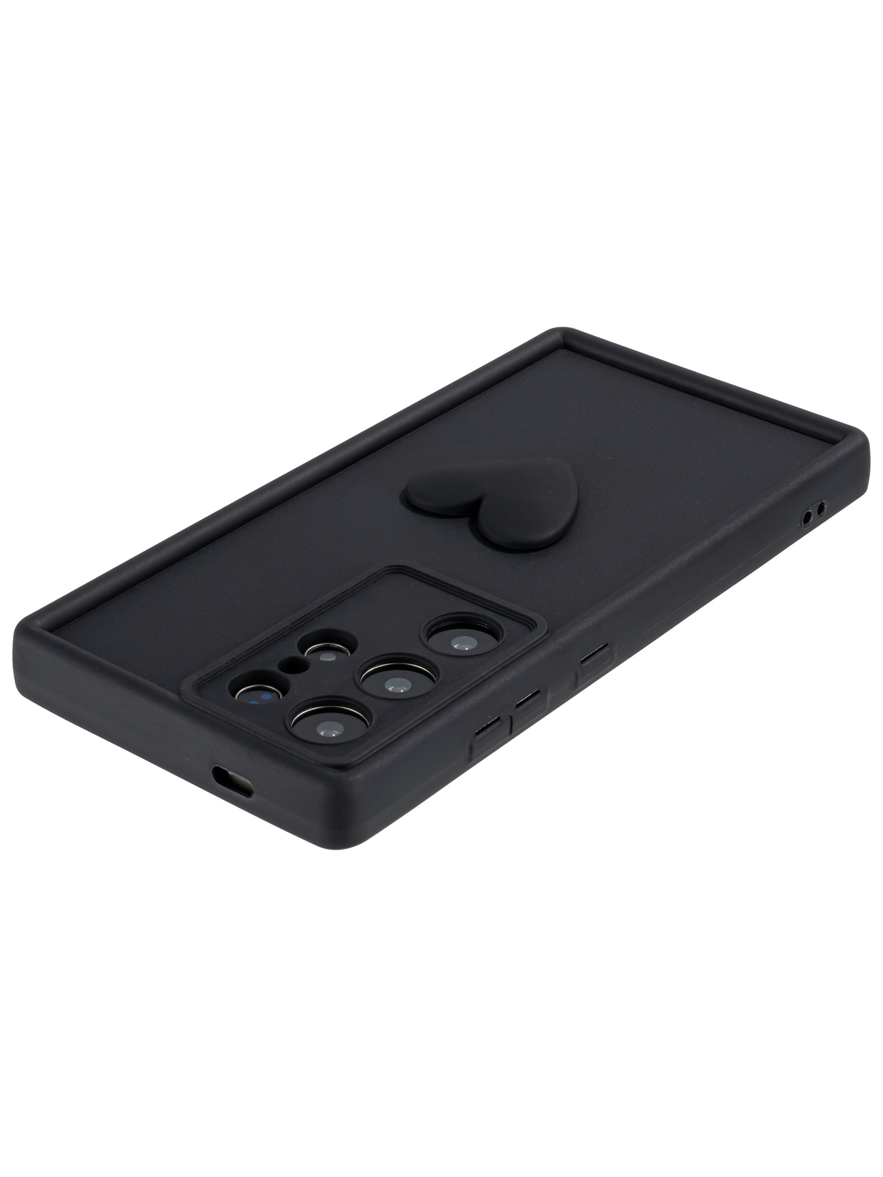 Силиконовый чехол с объемным сердцем от КейсБерри. Модуль камер максимально защищен. Все вырезы идеально подогнаны.
