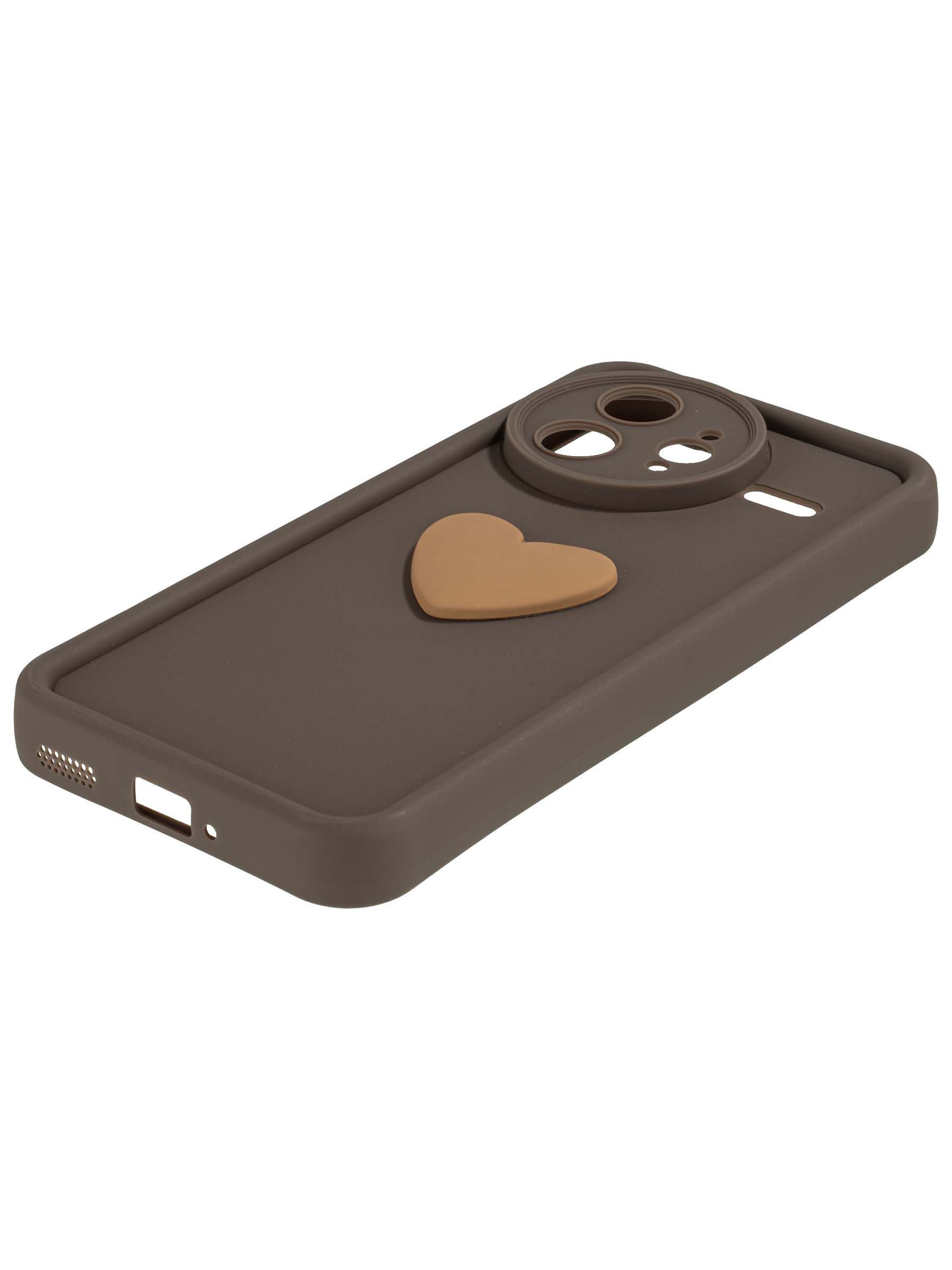 Силиконовый чехол с объемным сердцем от КейсБерри. Модуль камер максимально защищен. Все вырезы идеально подогнаны.