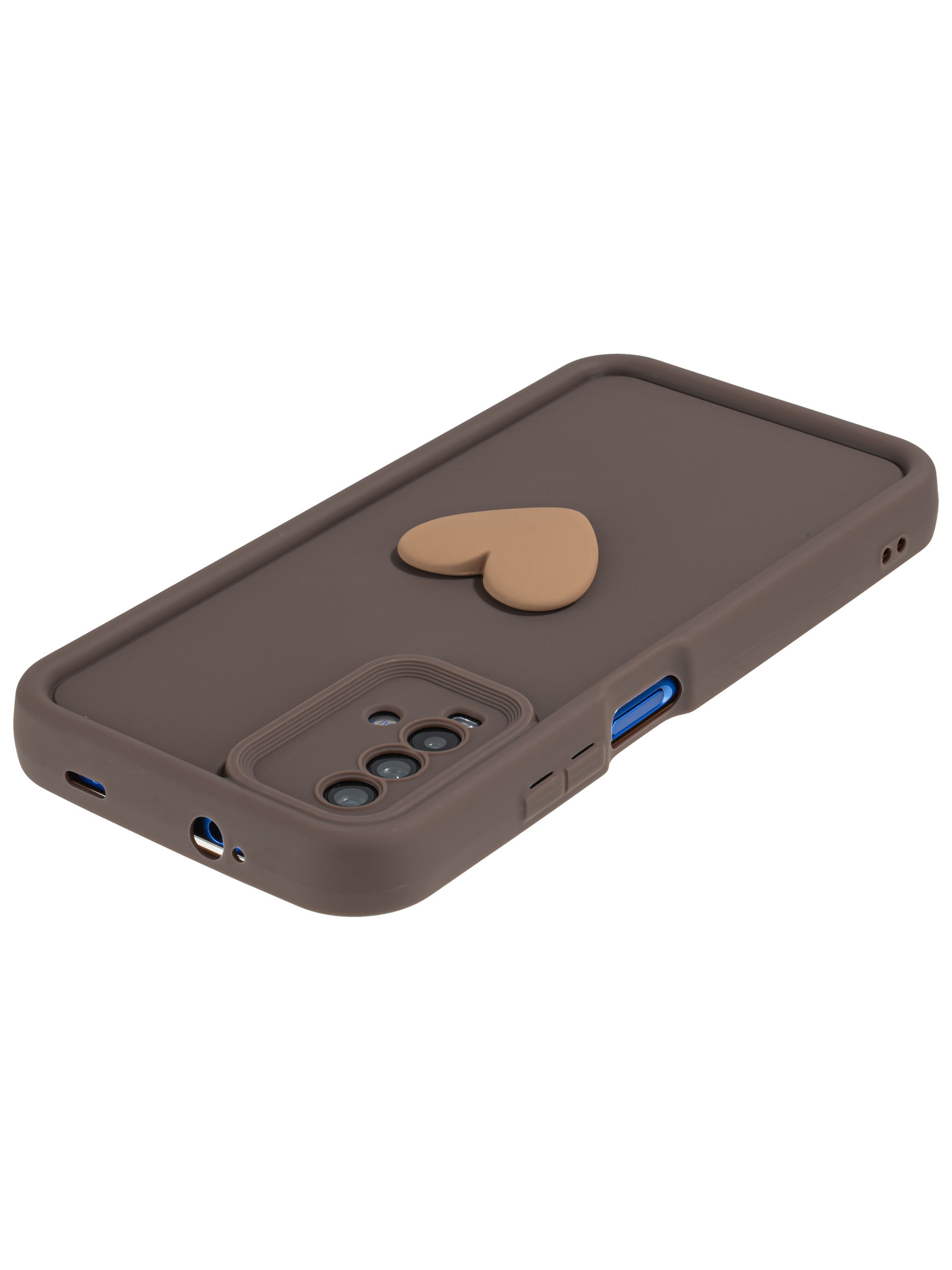 Силиконовый чехол с объемным сердцем от КейсБерри. Модуль камер максимально защищен. Все вырезы идеально подогнаны.