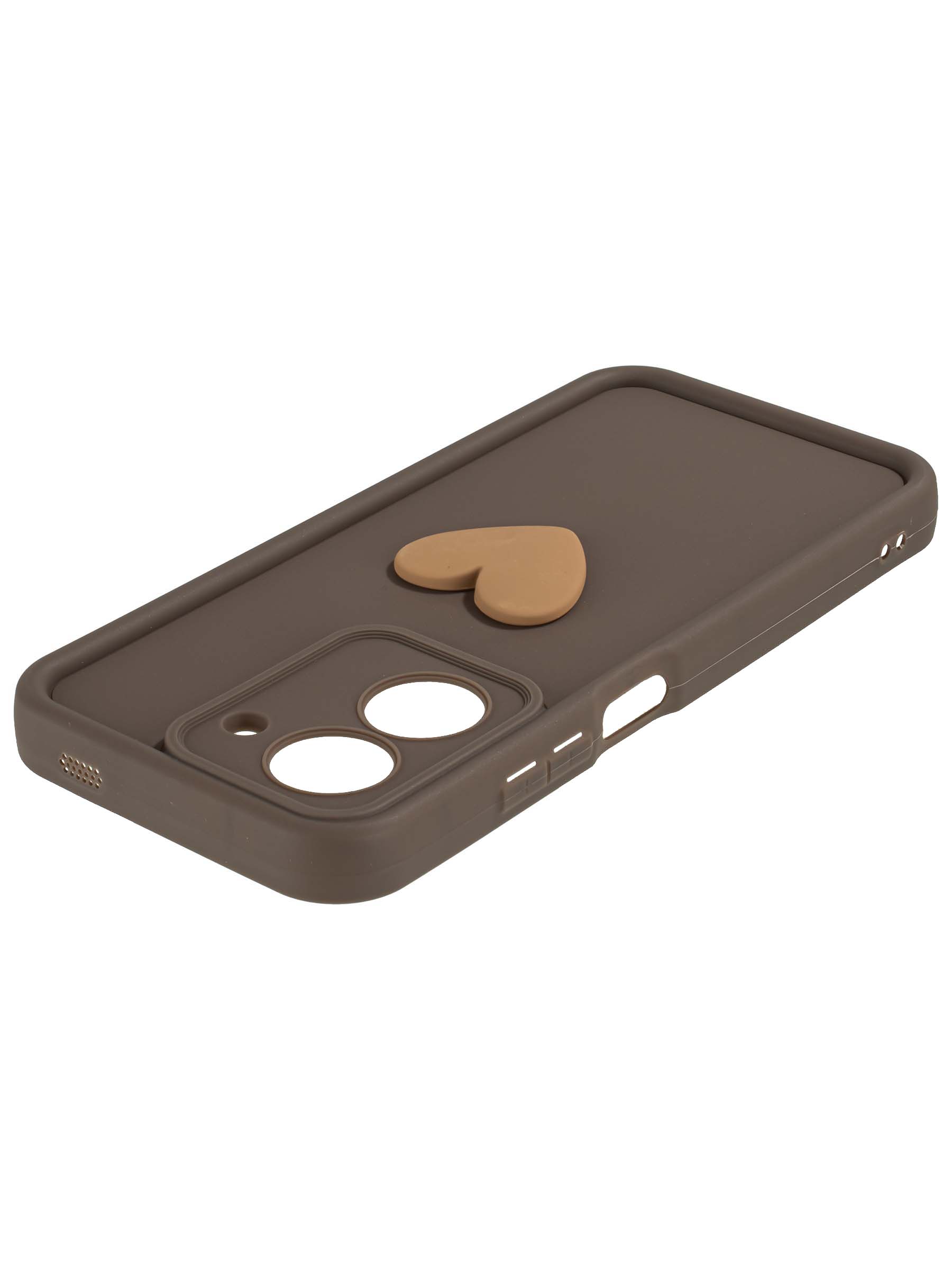 Силиконовый чехол с объемным сердцем от КейсБерри. Модуль камер максимально защищен. Все вырезы идеально подогнаны.