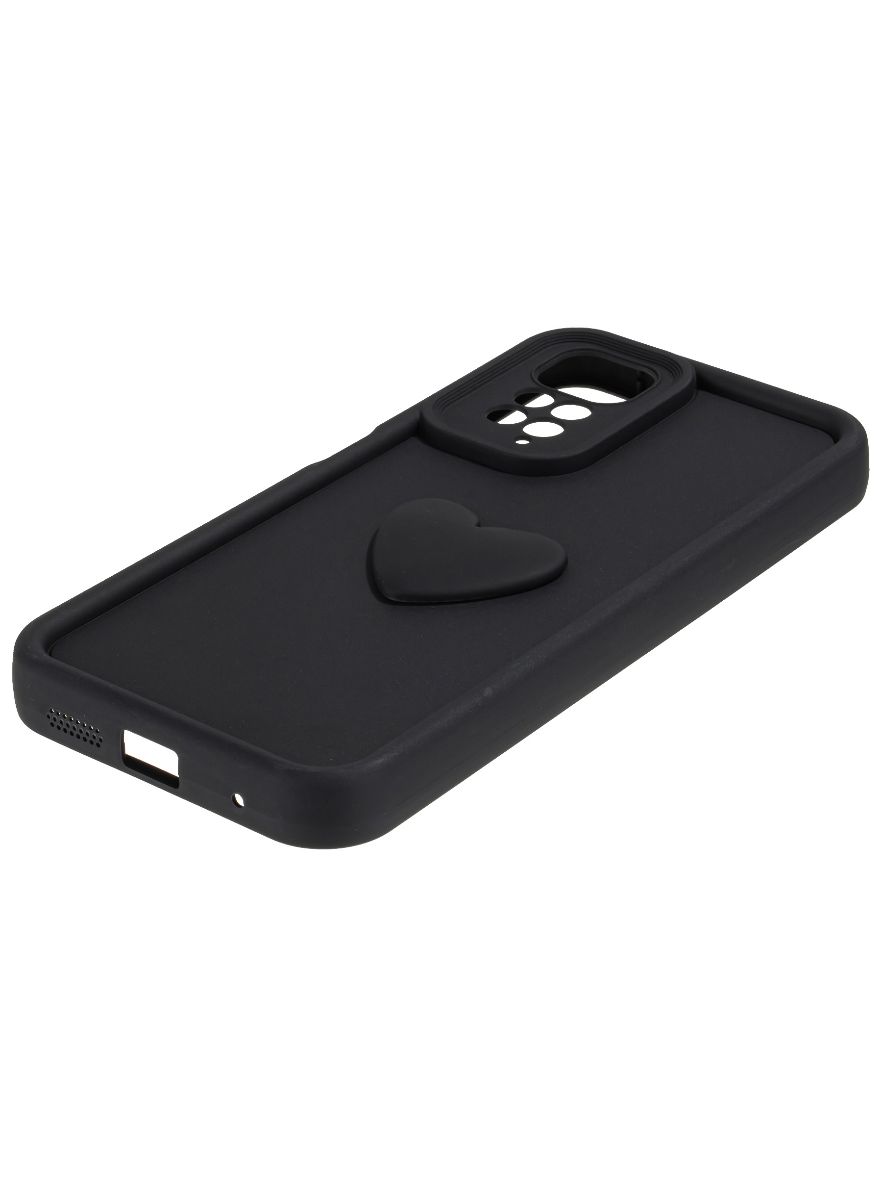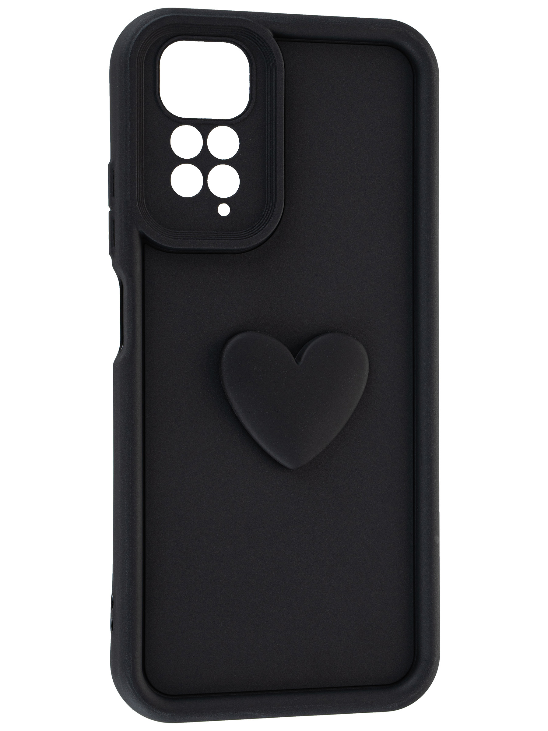 Силиконовый чехол с объемным сердцем от КейсБерри. Модуль камер максимально защищен. Все вырезы идеально подогнаны.