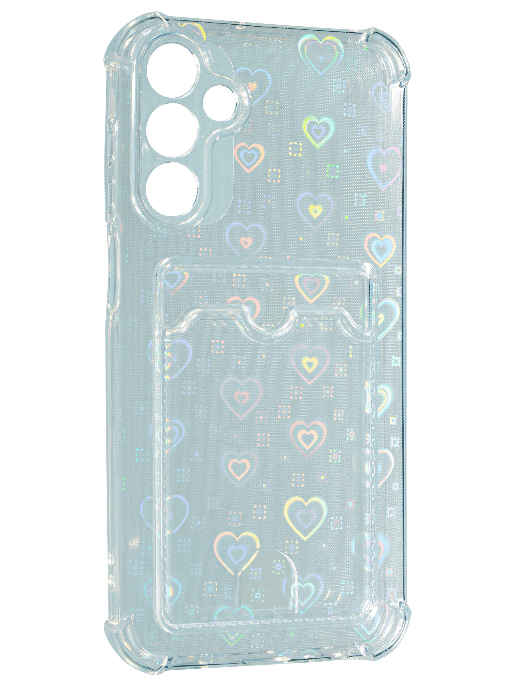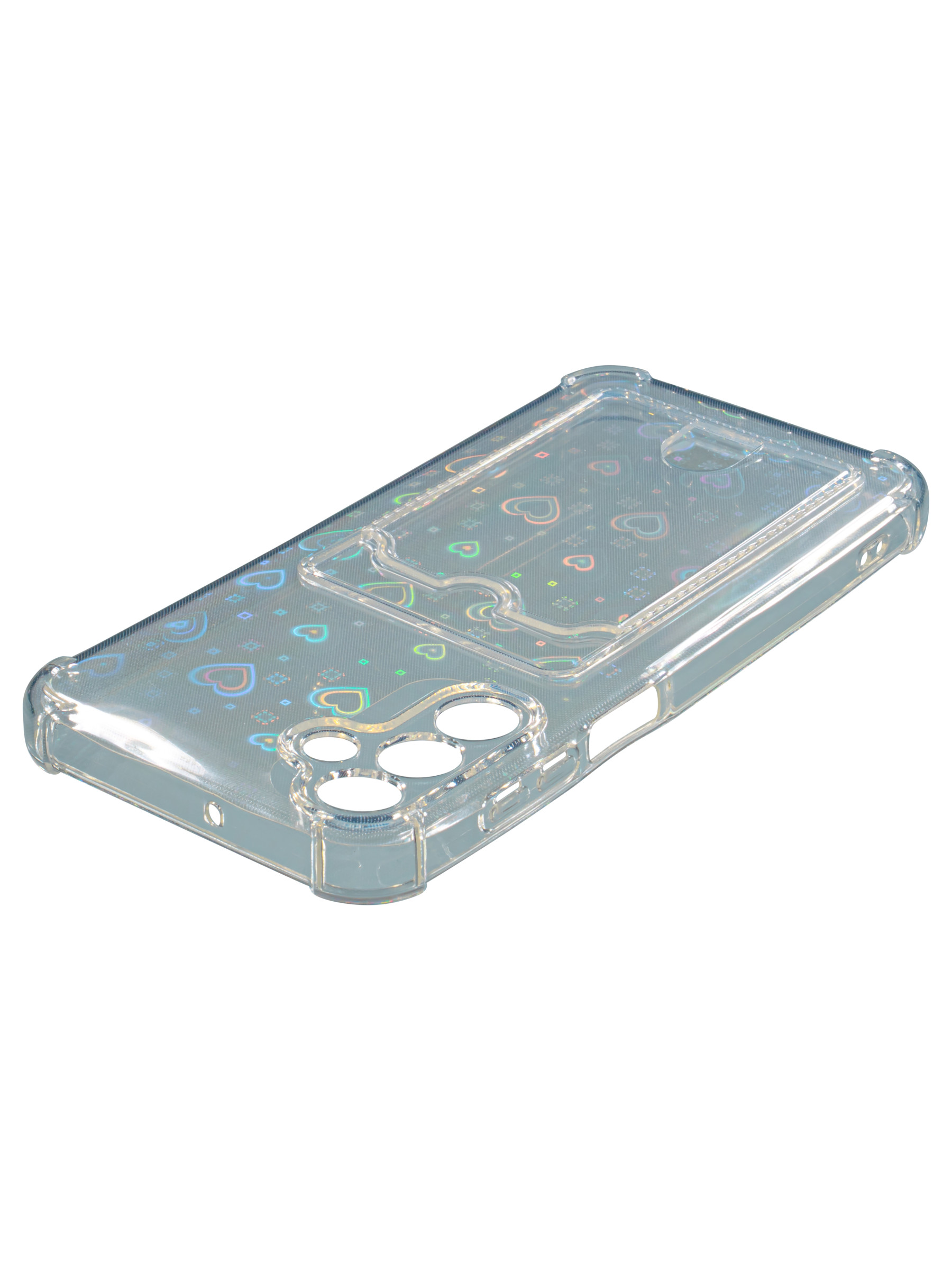 Противоударный силиконовый чехол со съемной мерцающей подложкой и кармашком. Рассчитан исключительно для хранения карт и визиток. Не предусмотрен для бесконтактной оплаты. Все вырезы идеально подогнаны.Серия White heart.