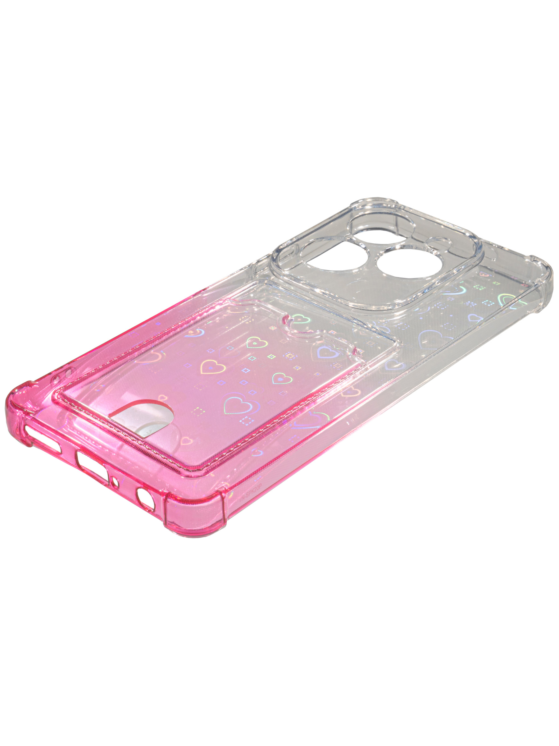 Силиконовый чехол White heart для Tecno Spark 20 Pro розовый градиент c вырезом под карту