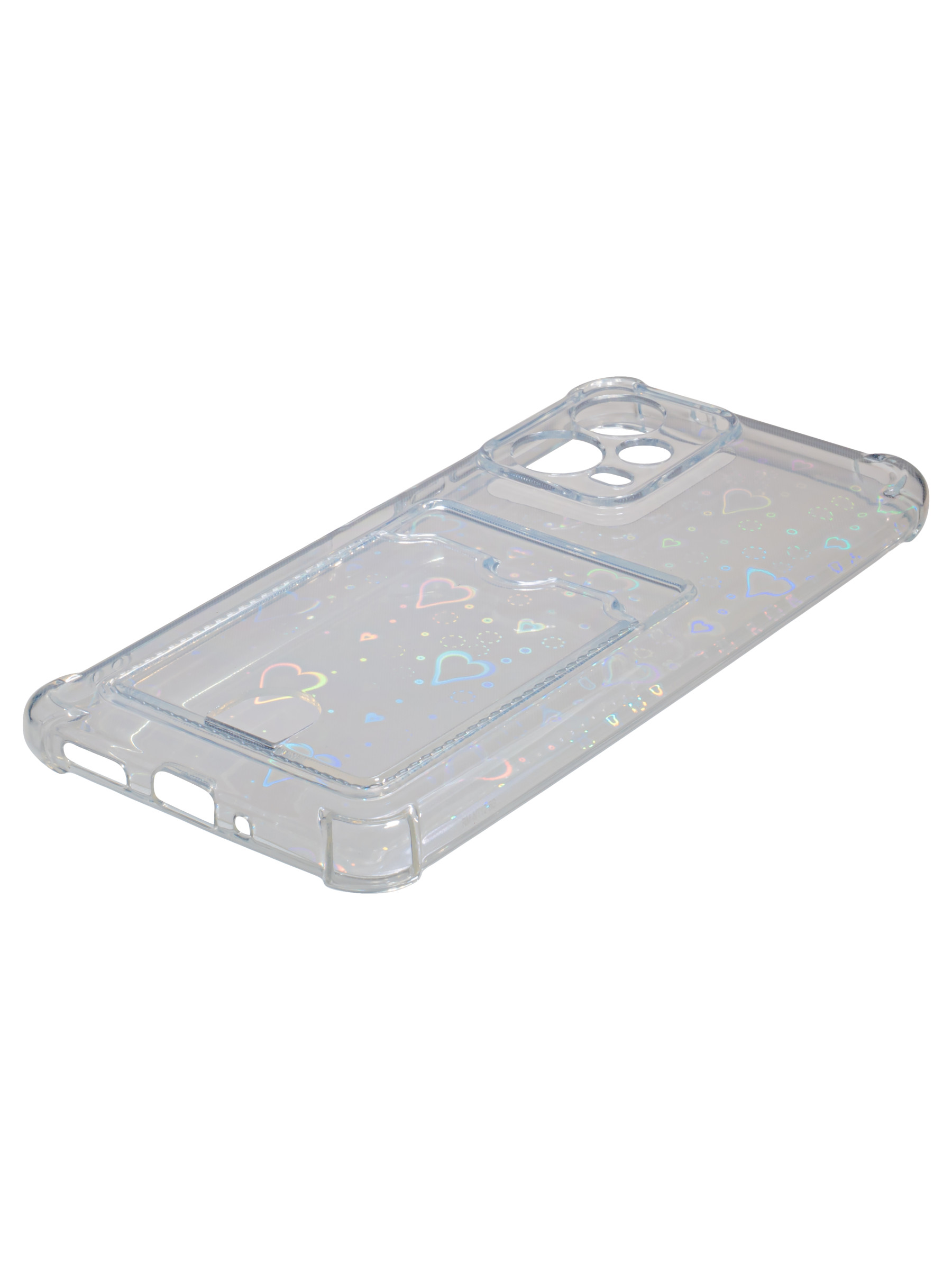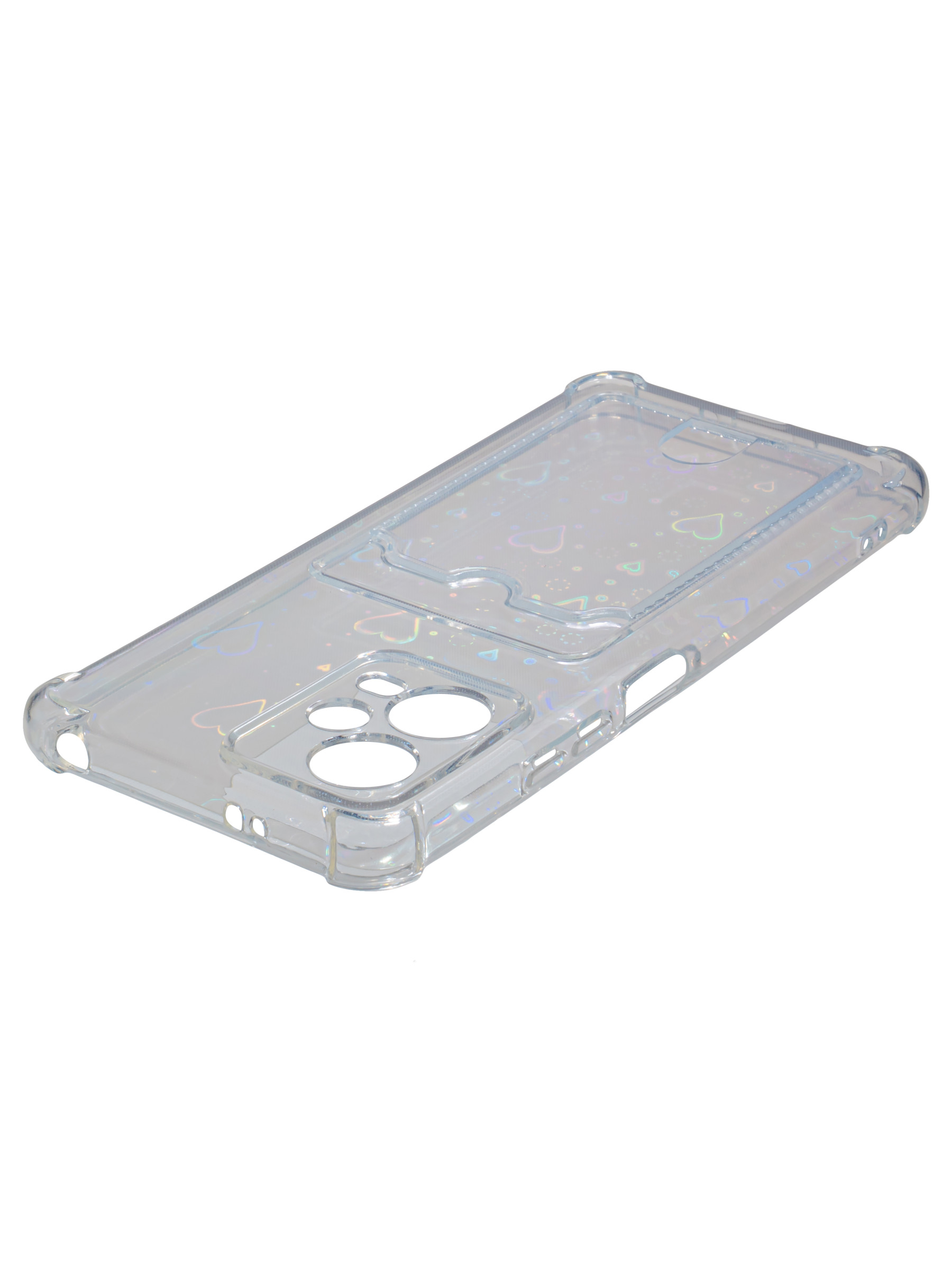 Противоударный силиконовый чехол со съемной мерцающей подложкой и кармашком. Рассчитан исключительно для хранения карт и визиток. Не предусмотрен для бесконтактной оплаты. Все вырезы идеально подогнаны.Серия White heart.