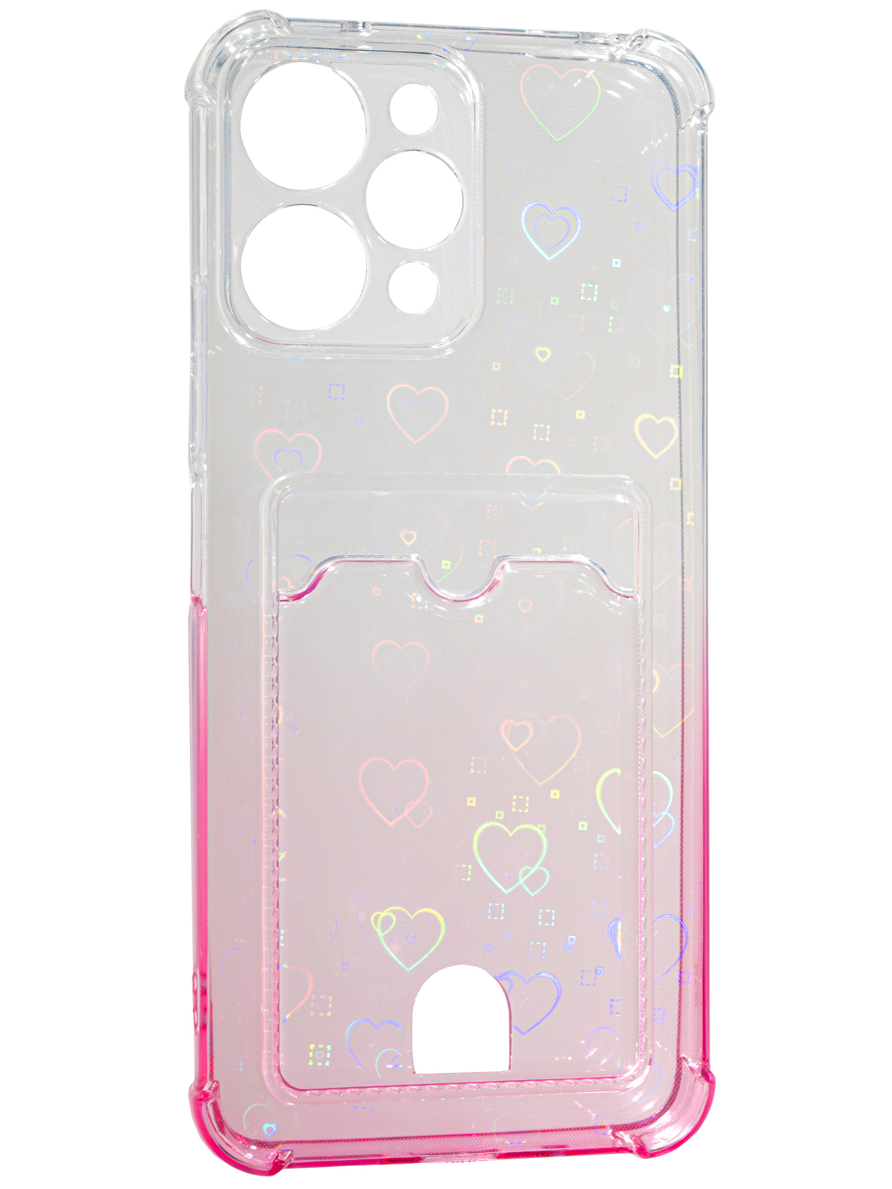 Силиконовый чехол White heart для Xiaomi Redmi 12 розовый градиент c вырезом под карту