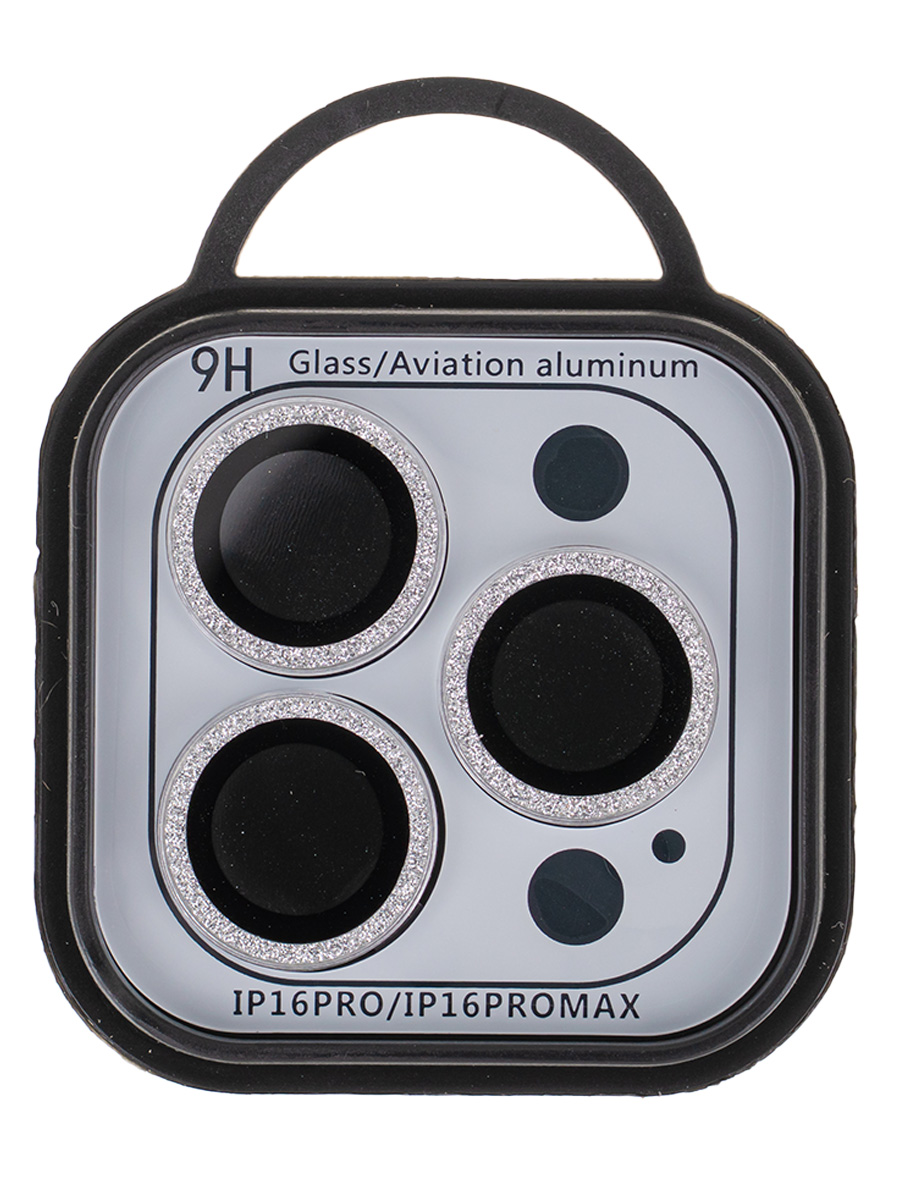 Защитное стекло КейсБерри MX для iPhone 16 Pro на камеру серебристое с блестками №4