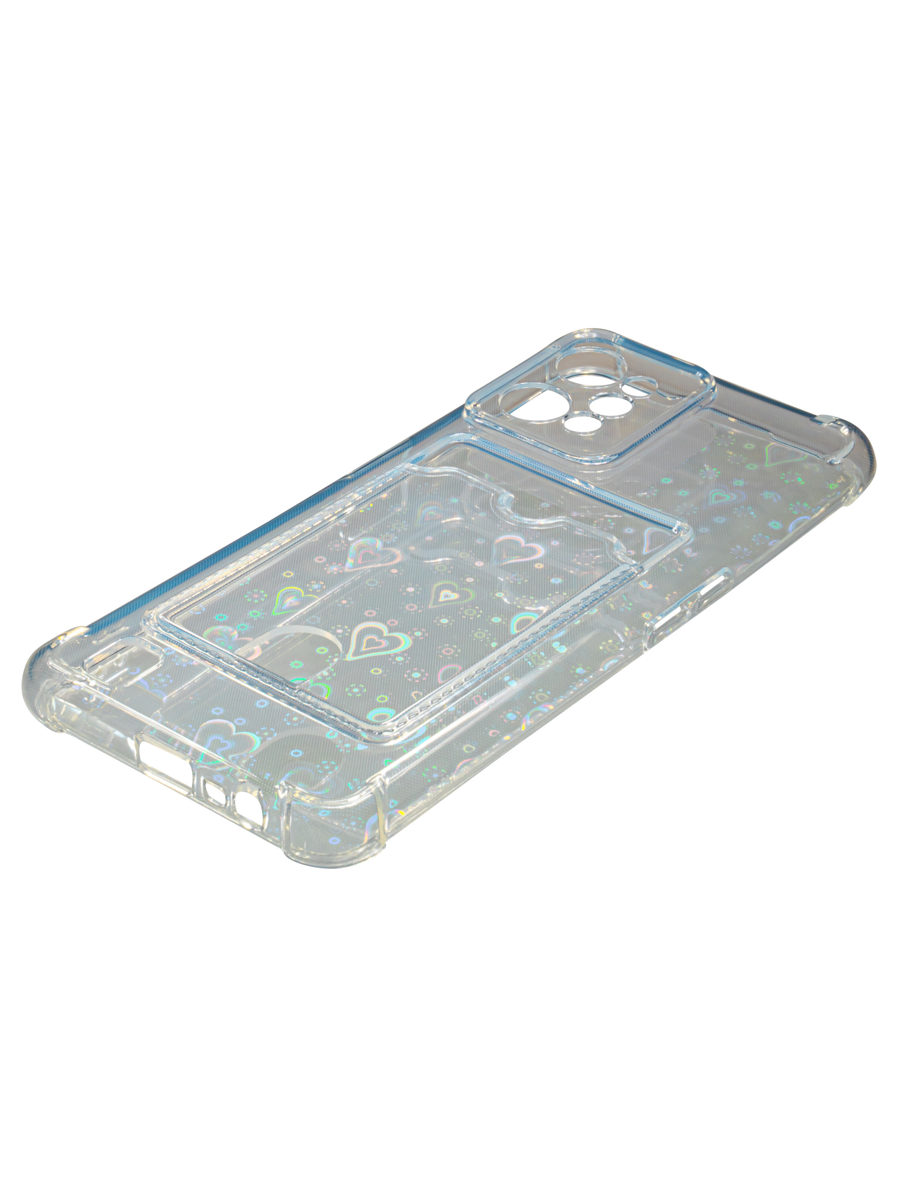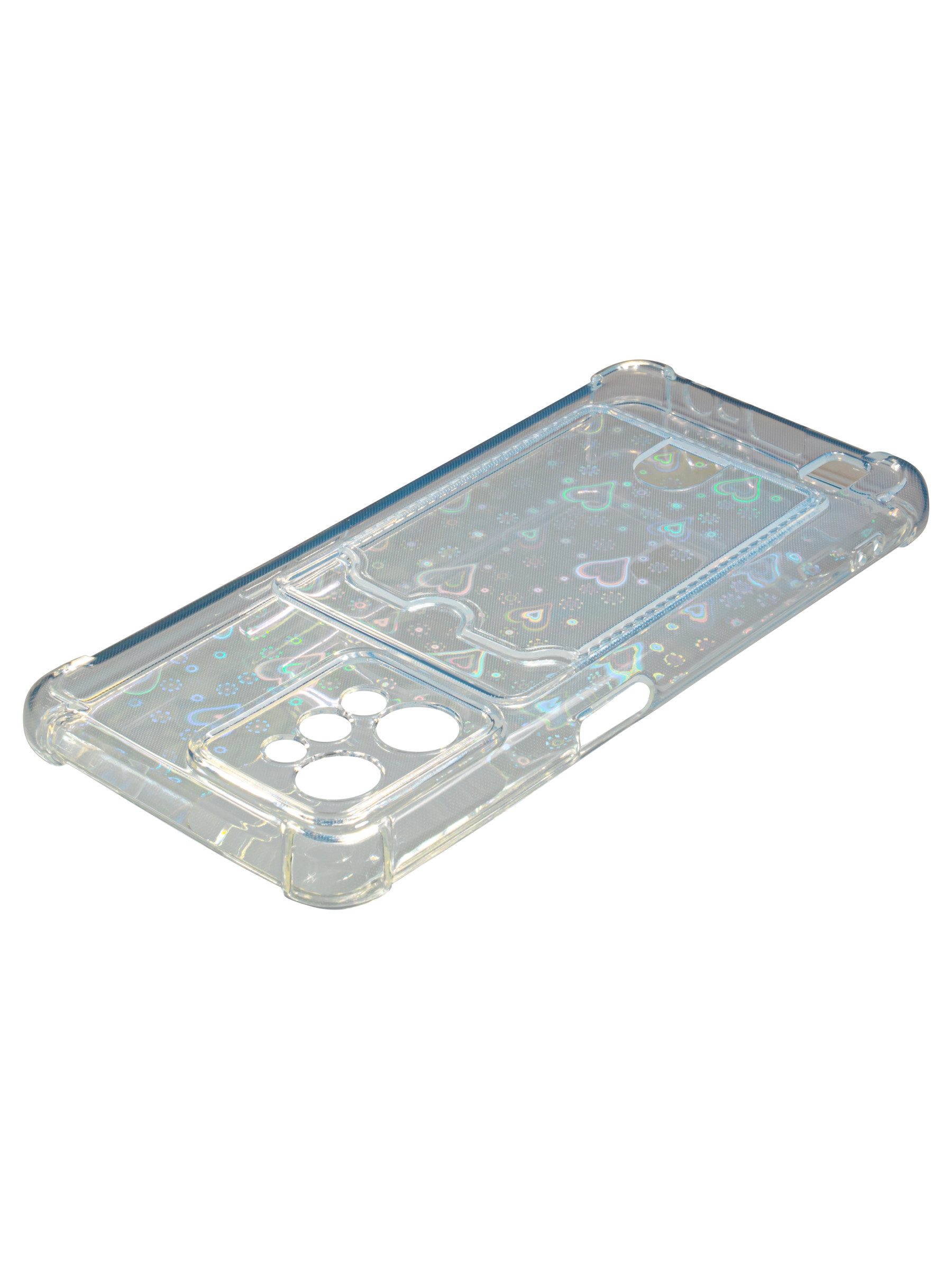 Противоударный силиконовый чехол со съемной мерцающей подложкой и кармашком. Рассчитан исключительно для хранения карт и визиток. Не предусмотрен для бесконтактной оплаты. Все вырезы идеально подогнаны.Серия White heart.